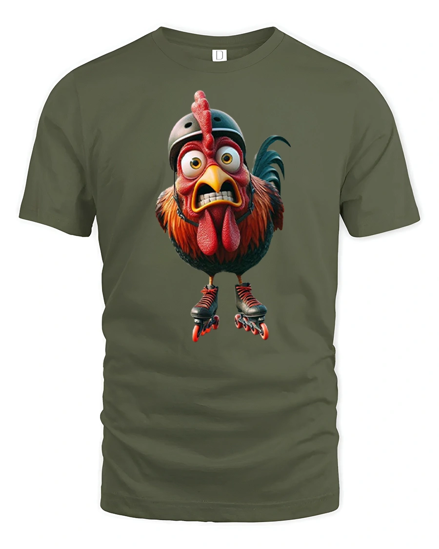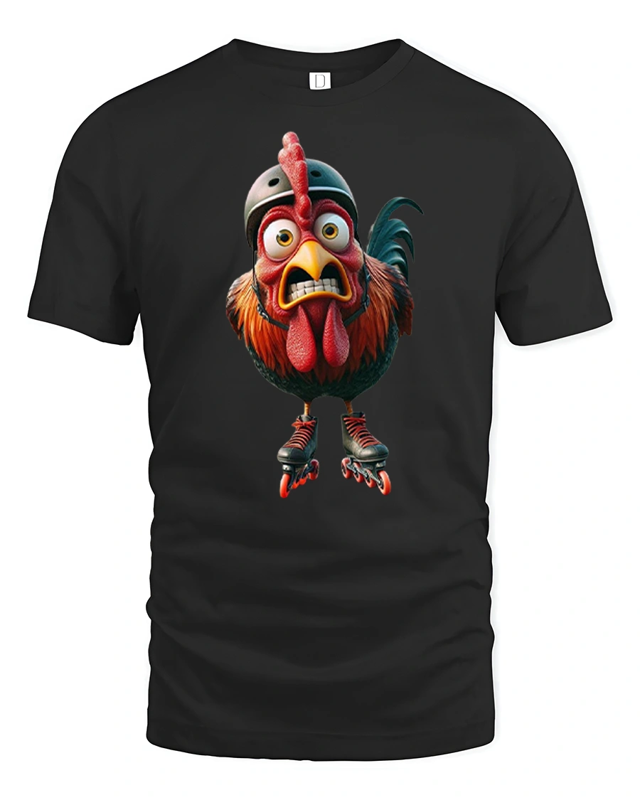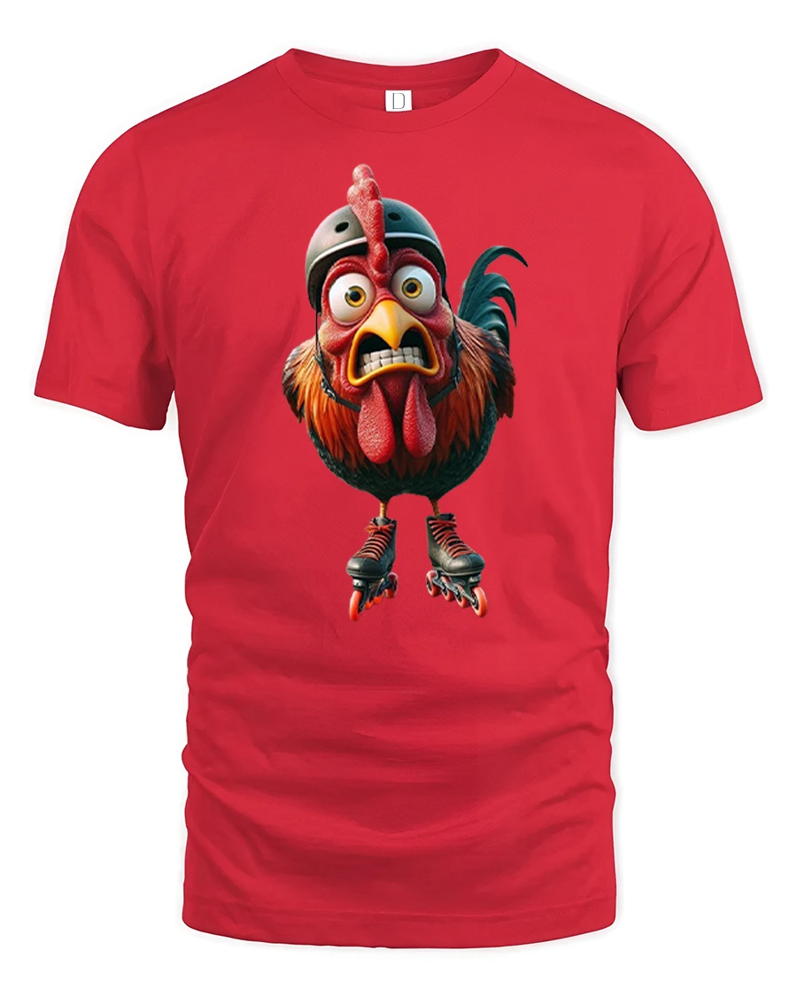 Bring bold personality and unexpected humor to your wardrobe with the Funny Roller Skating Chicken Graphic T Shirt. This eye catching design features a wide eyed rooster rocking roller skates and a helmet, delivering a hilarious twist on classic farm animal art. The roller skating chicken t shirt blends playful creativity with vibrant detail, making it a standout piece that instantly grabs attention.