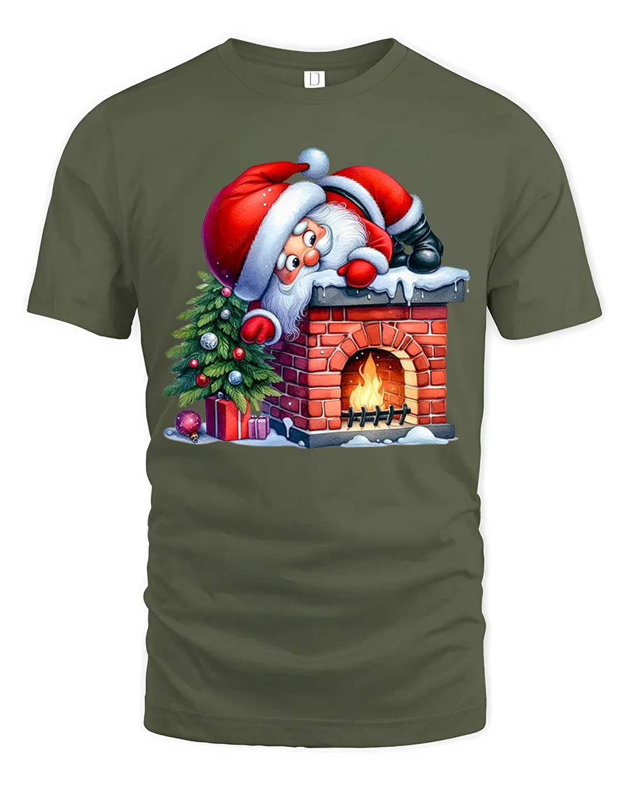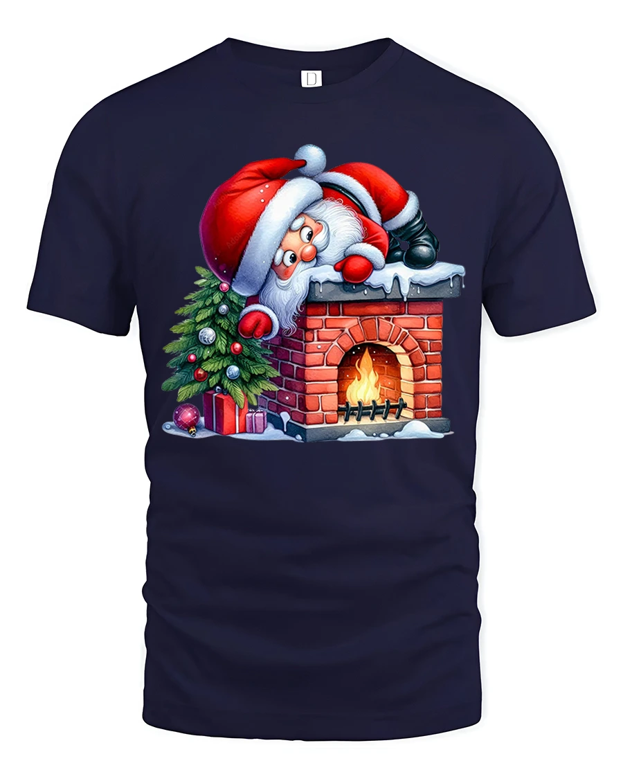 Funny Santa Stuck on Chimney Christmas Tee is the perfect holiday shirt for anyone who loves humor, charm, and festive spirit. Featuring a playful illustration of Santa lying across a snowy chimney with a glowing fireplace below, this tee captures the joy and silliness of Christmas in a fun and adorable way. The vibrant colors, cozy winter details, and cheerful expression make it a standout piece for holiday gatherings.