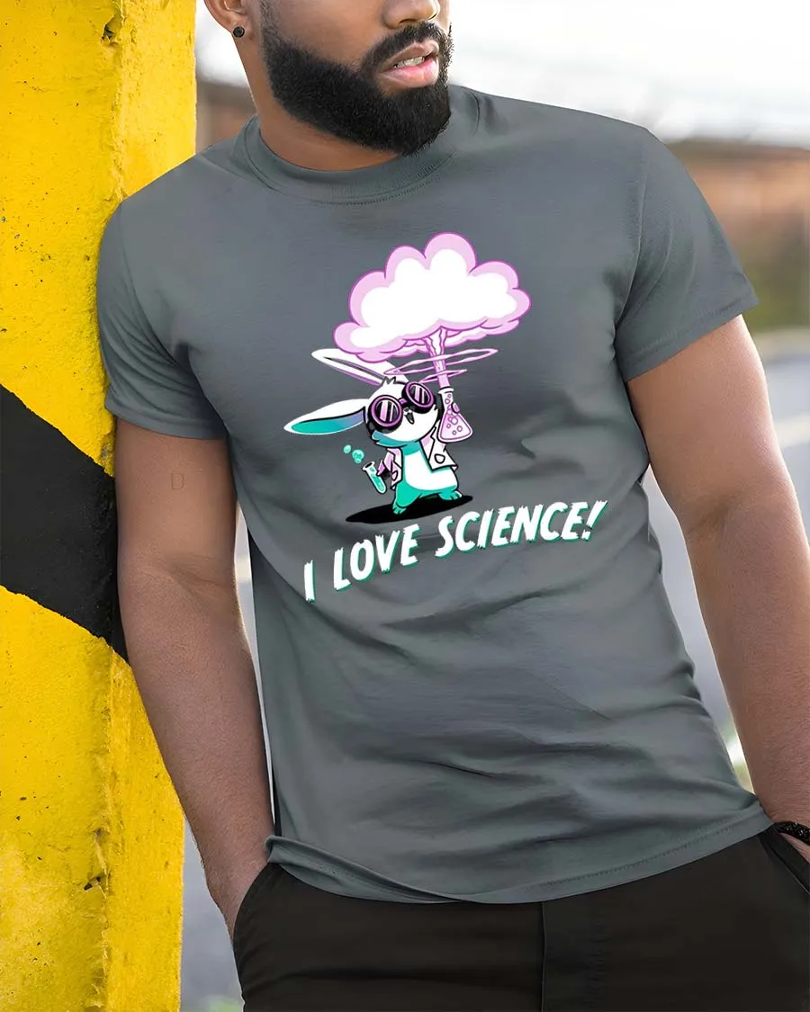 Featuring an adorable bunny dressed as a scientist with lab equipment and a bold graphic style, this t-shirt brings humor and personality together.