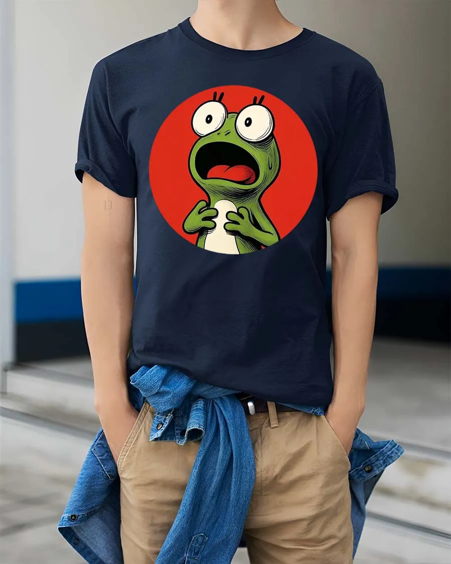 The high-quality print keeps the cartoon frog artwork vibrant and sharp, so the funny reaction graphic stays eye-catching even after repeated washes.