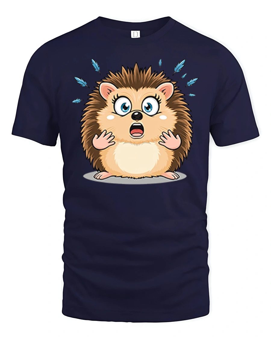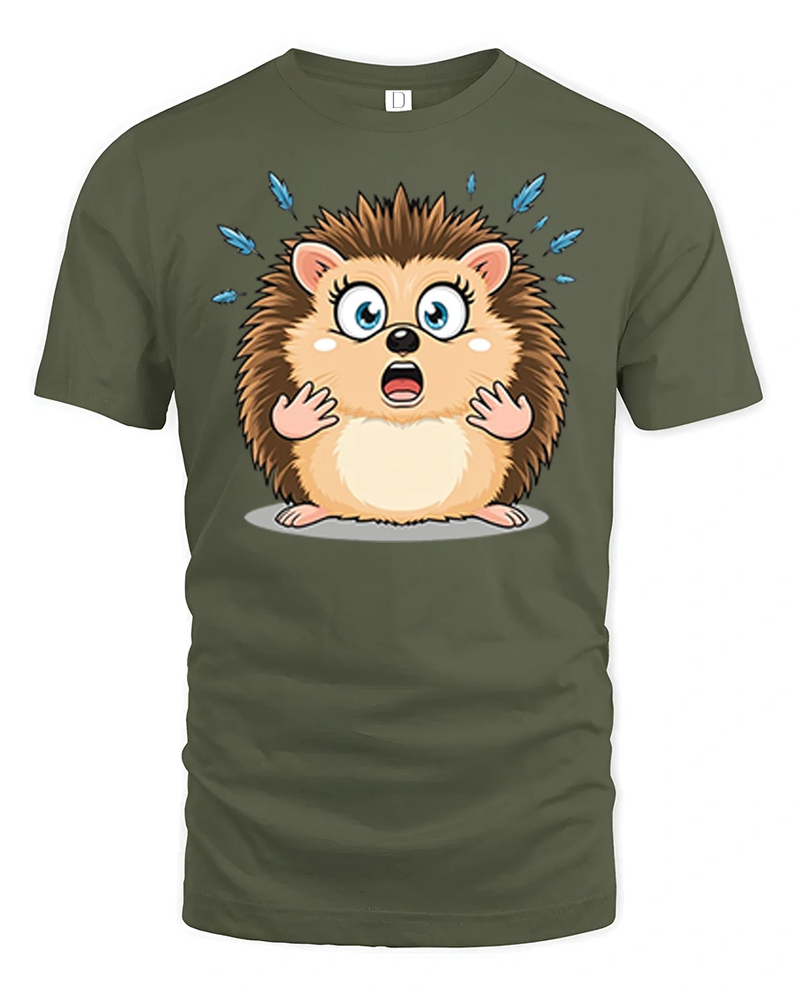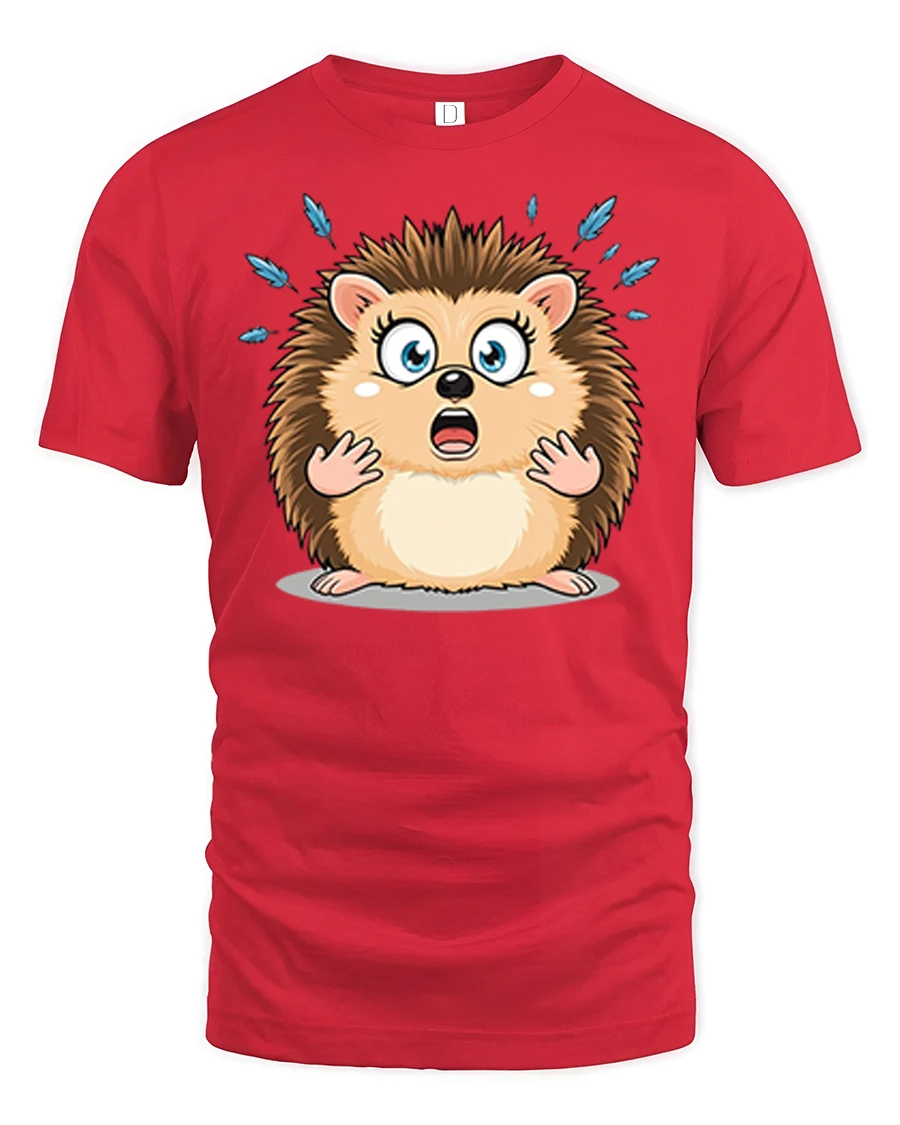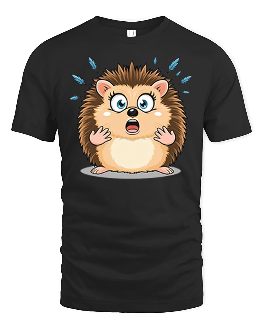 Funny Shocked Hedgehog Cartoon Tee With Cute Surprised Face Art