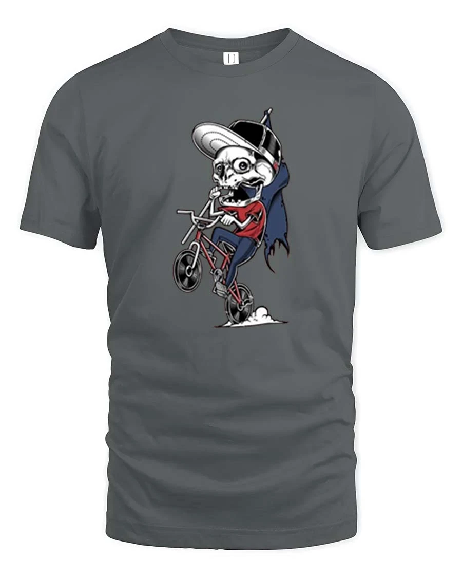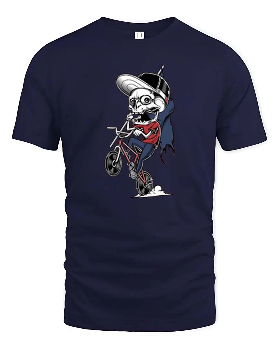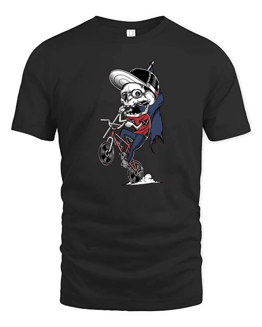 This skull bike rider t-shirt is also a great gift for BMX riders, cycling fans, and anyone who enjoys funny skeleton-themed graphics.
