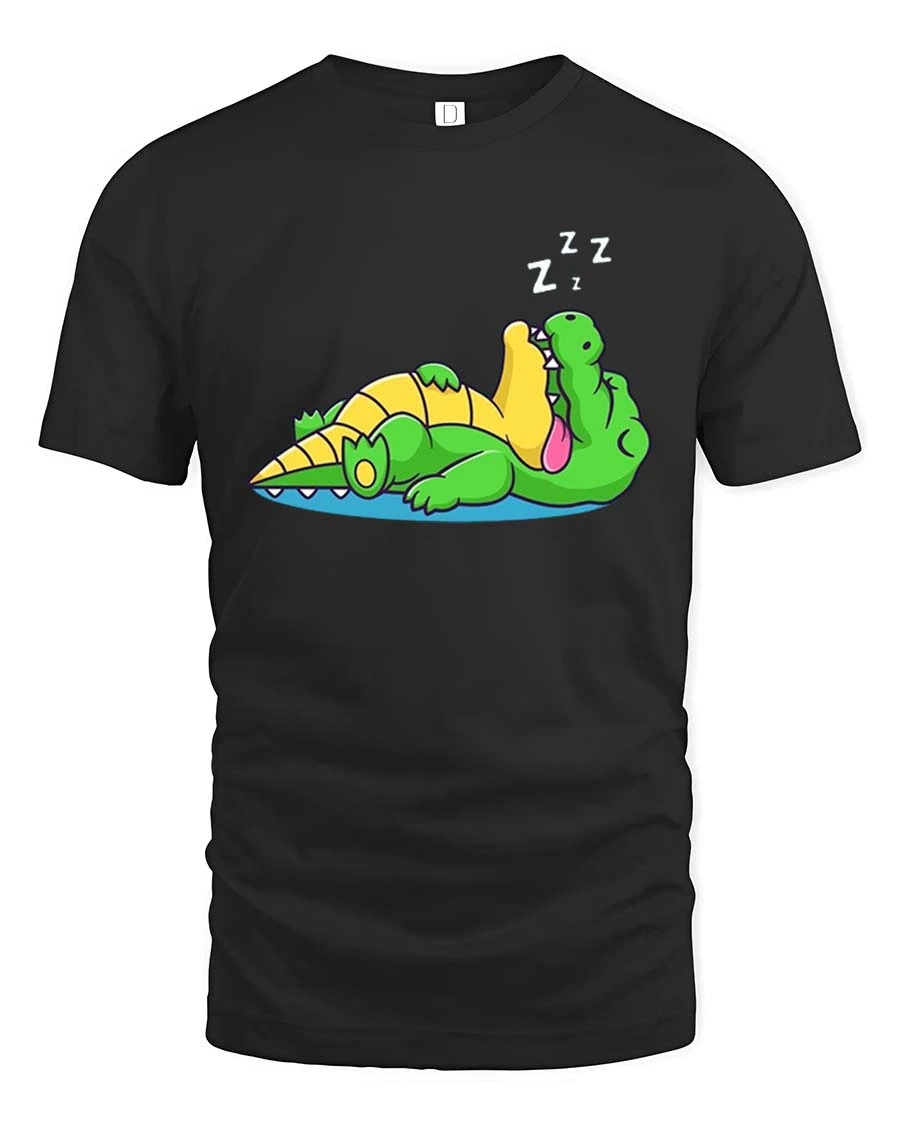 Funny Sleeping Crocodile Cartoon Lazy Relax Chill Tshirt shows a playful reptile character enjoying a peaceful nap in a humorous cartoon style.