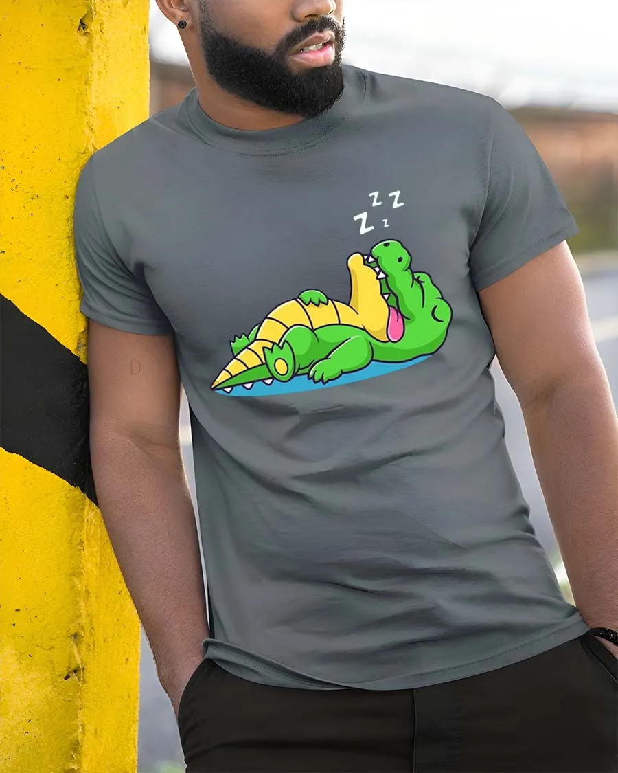 Funny Sleeping Crocodile Cartoon Lazy Relax Chill Tshirt pairs easily with casual outfits and comfortable daily fashion choices.