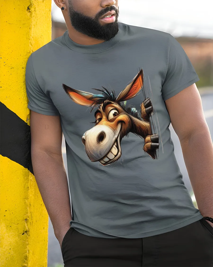 Made from soft breathable fabric, this t shirt feels smooth and comfortable all day long. The high quality print captures every detail of the cartoon artwork, from the bright ears to the exaggerated smile. Perfect for casual outings, weekend fun, or relaxed hangouts, this donkey tshirt adds a lighthearted vibe to any outfit while keeping your look fresh, fun, and full of character.