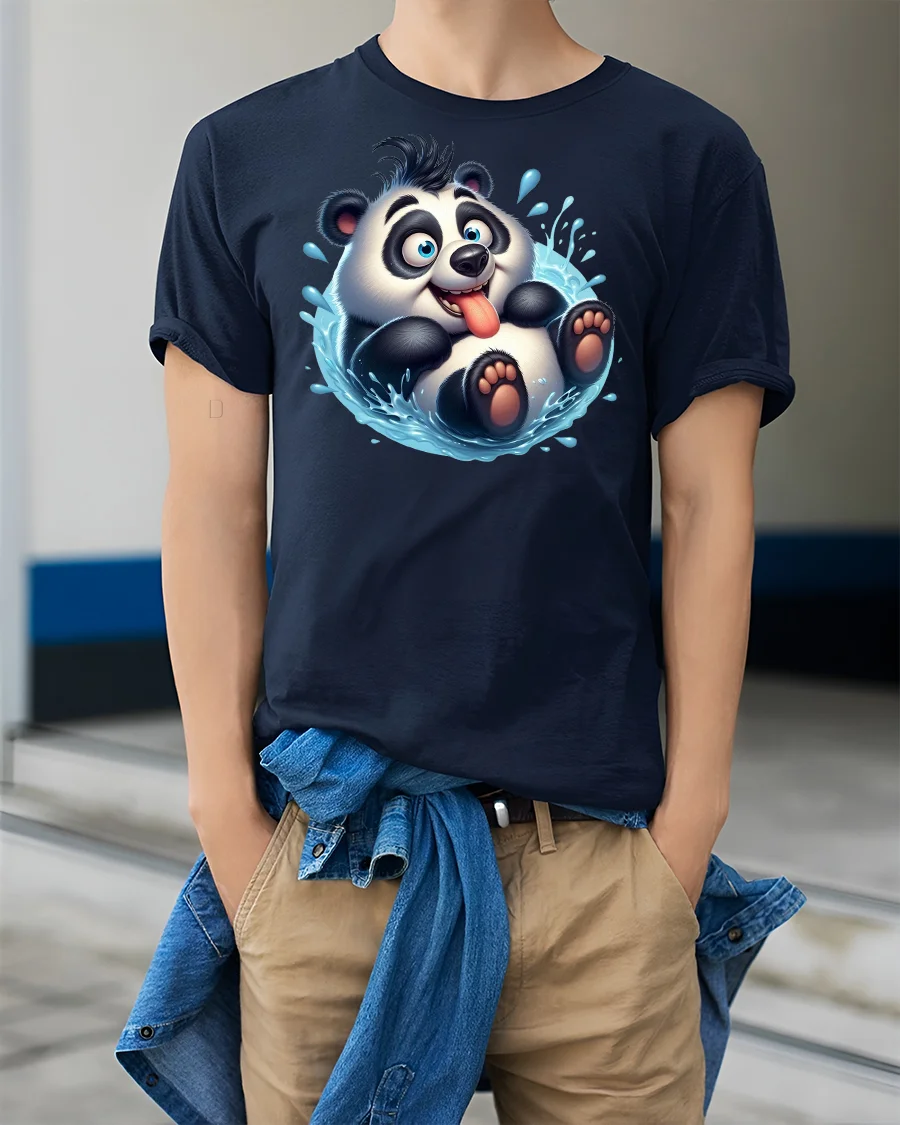 Bring smiles wherever you go with this Funny Splashing Panda Cute Cartoon Graphic T-Shirt.
