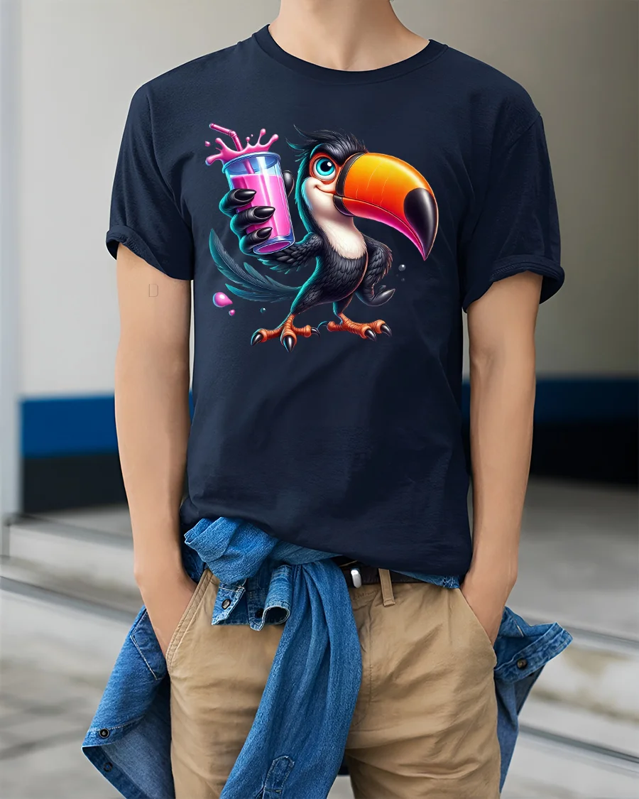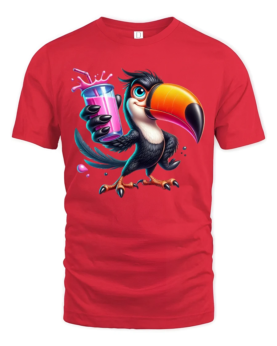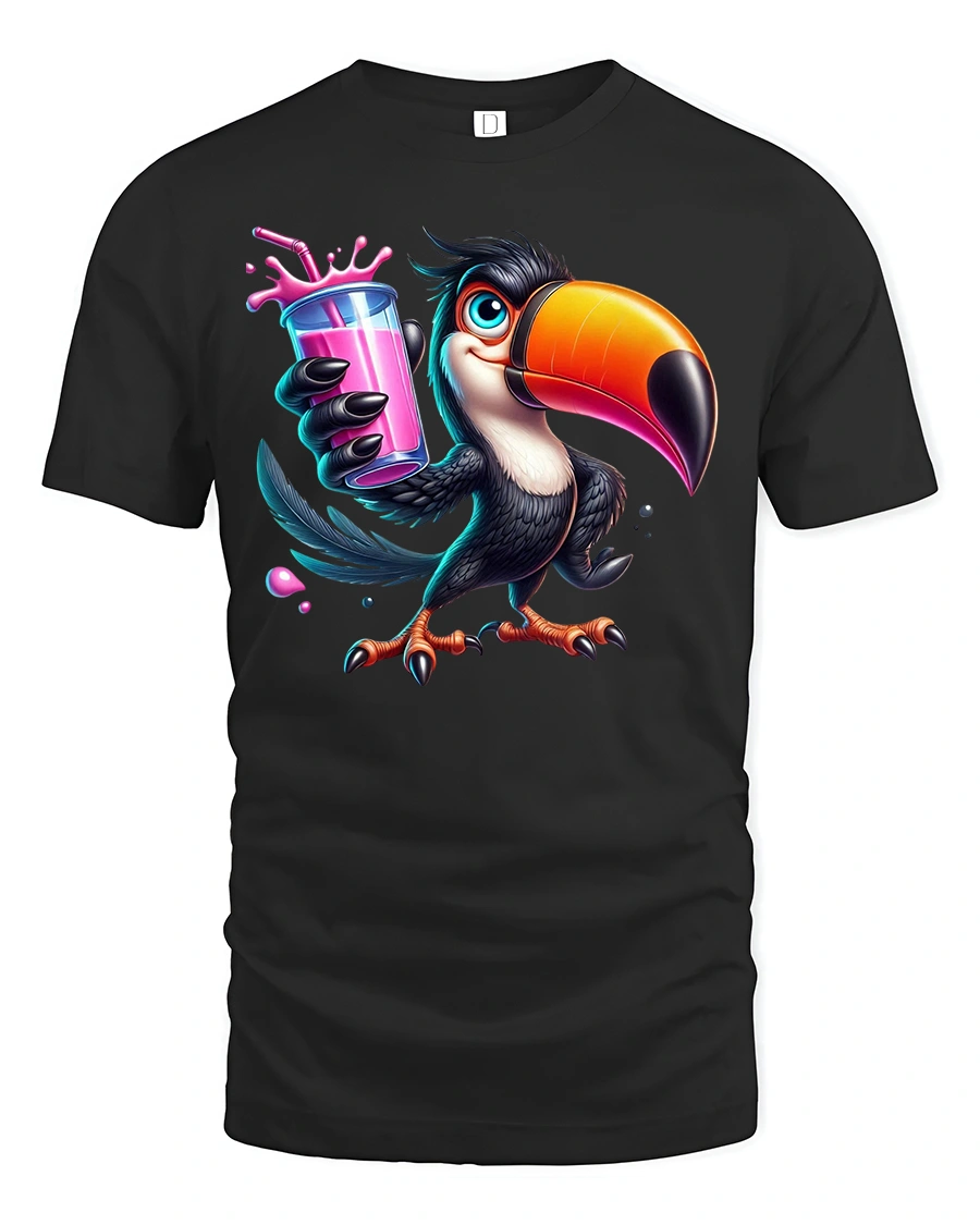Whether you love exotic birds, enjoy playful graphic designs or want a shirt that spreads fun everywhere you go, this t-shirt delivers smiles and sunshine in wearable form. Let this cool toucan and its bright pink drink bring tropical joy to your day.