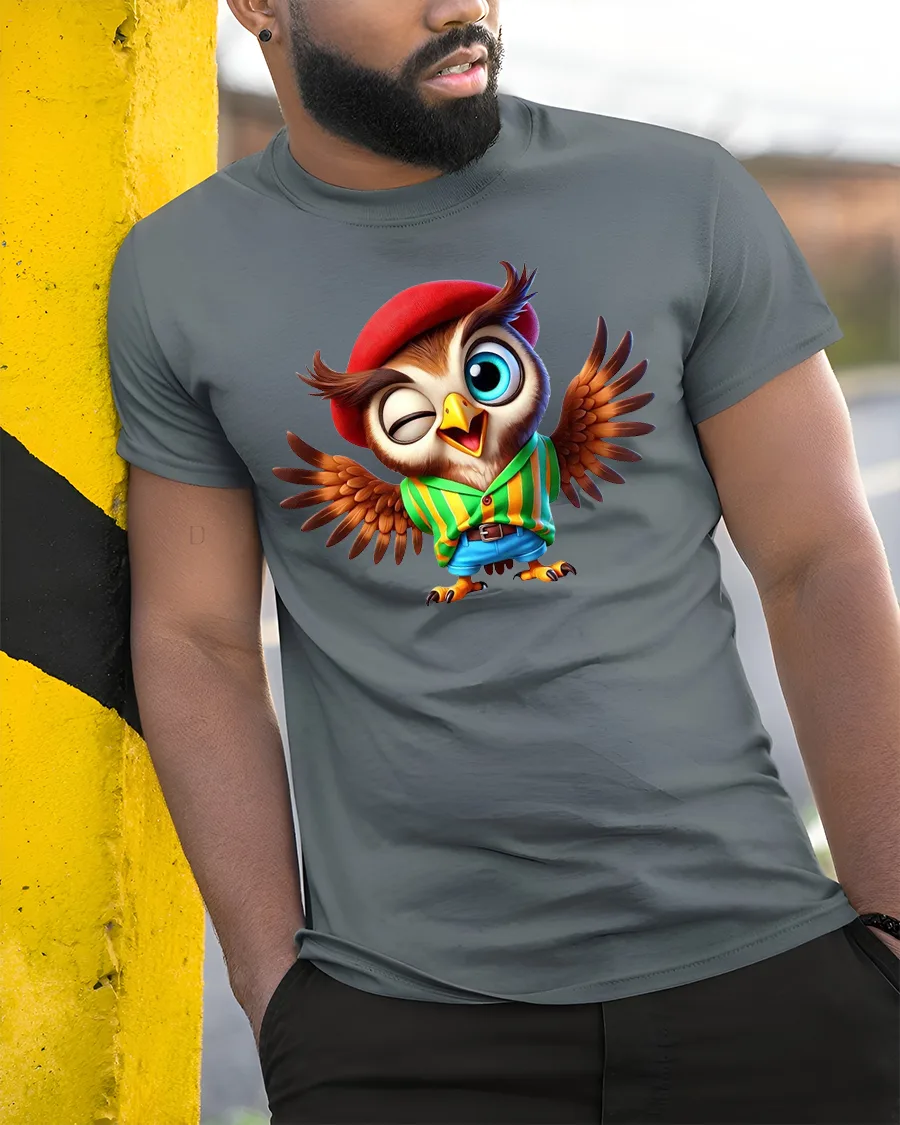Funny Winking Owl Tee Cute Cartoon Owl With Hat And Wings Art combines cute character art with lively colors and smooth illustration.