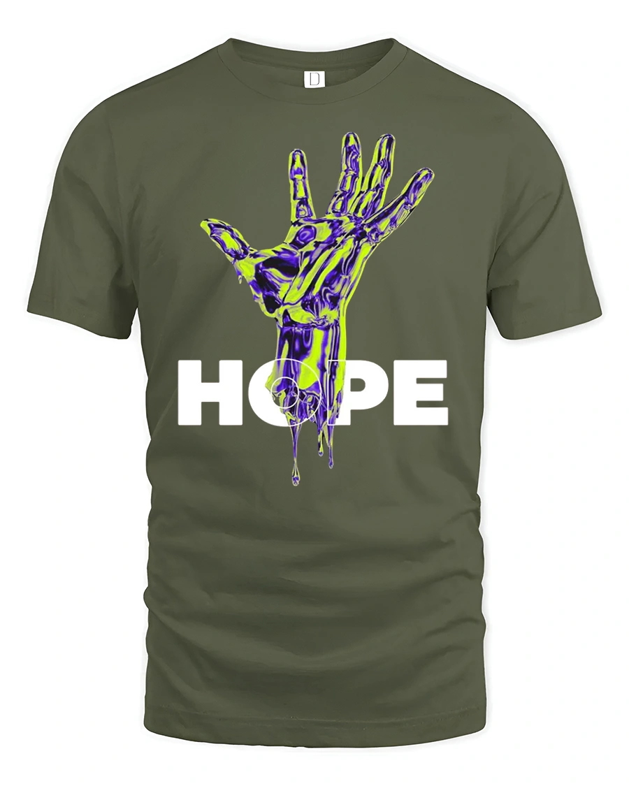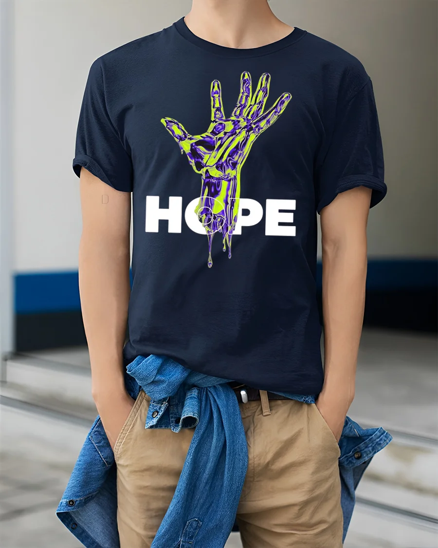Futuristic Hope Hand Graphic Tee Streetwear Style delivers a powerful message with an edgy, modern twist. Featuring a bold neon hand design paired with the word “HOPE” in strong typography, this shirt combines motivational energy with striking streetwear fashion. The dripping neon details give it a futuristic and artistic vibe, making it perfect for those who want their clothing to speak louder than words.
