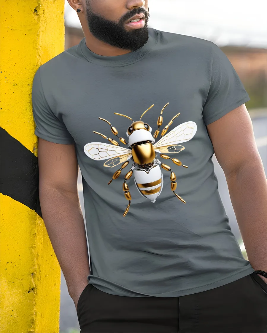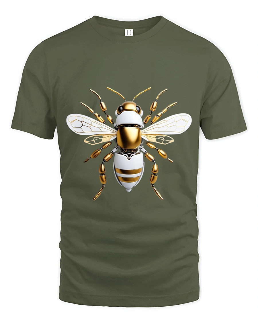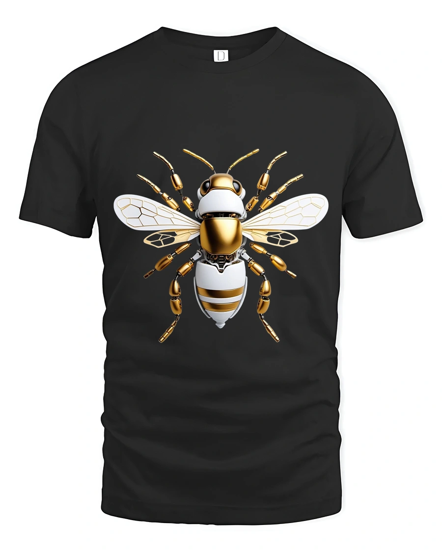 The Futuristic Robotic Bee Art Tee Tech Insect Graphic T Shirt showcases innovation, precision, and bold futuristic style in a striking design.