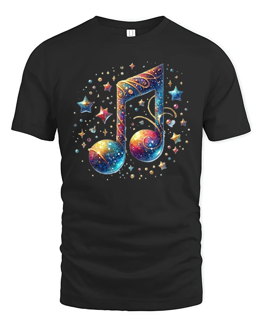 The Galaxy Music Note Starry Art Graphic Tee Cosmic Sound Tshirt is ideal for music lovers artists and creative spirits.