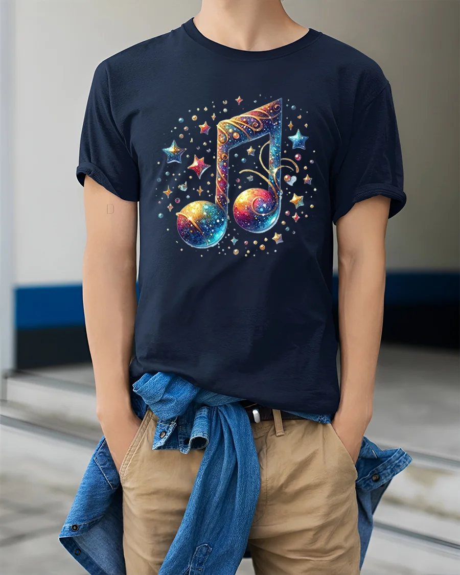 The Galaxy Music Note Starry Art Graphic Tee Cosmic Sound Tshirt is made to deliver both comfort and standout style.