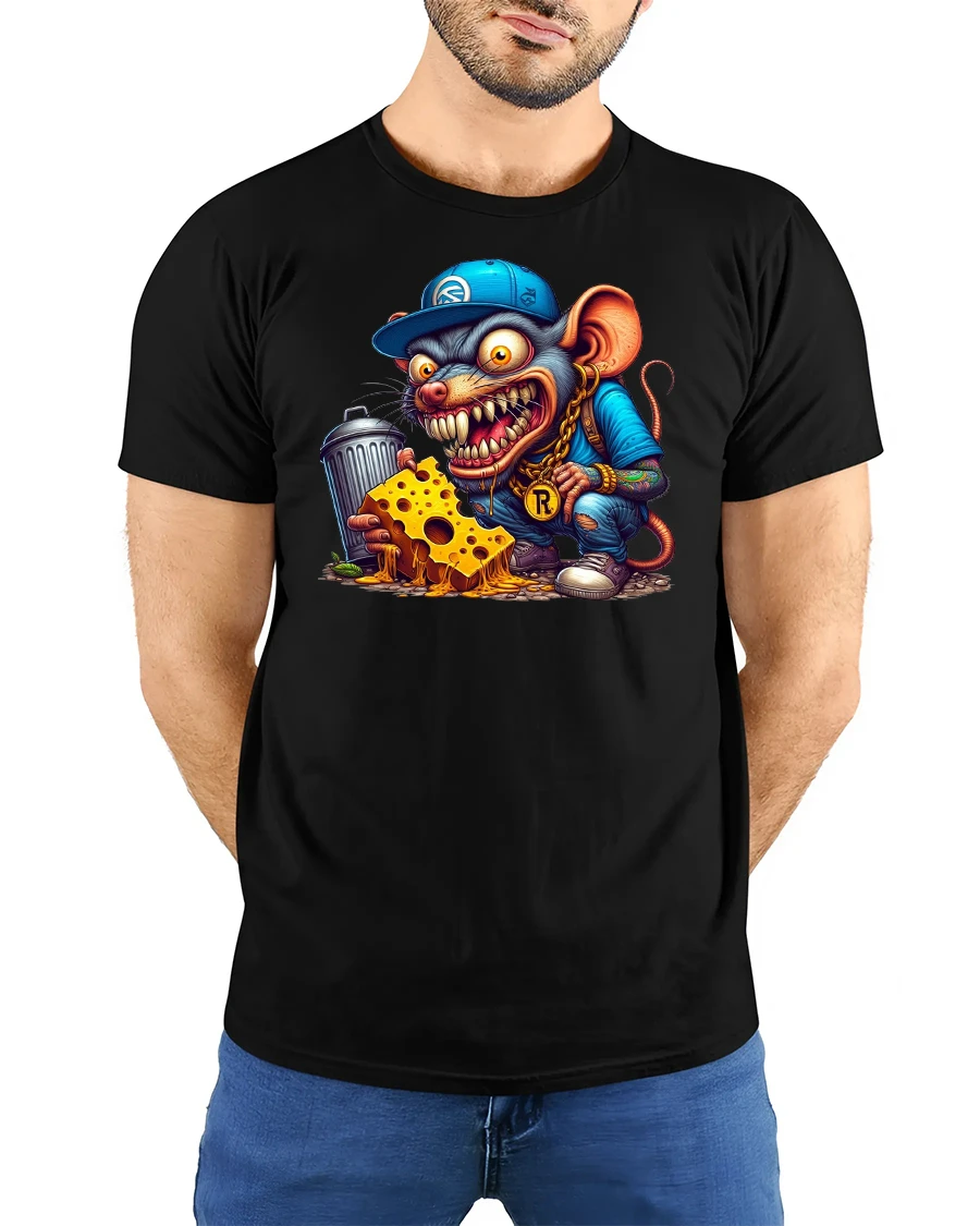 Gangsta Rat with Cheese Funny Cartoon Graphic T-Shirt is the perfect mix of humor, attitude, and bold street style.