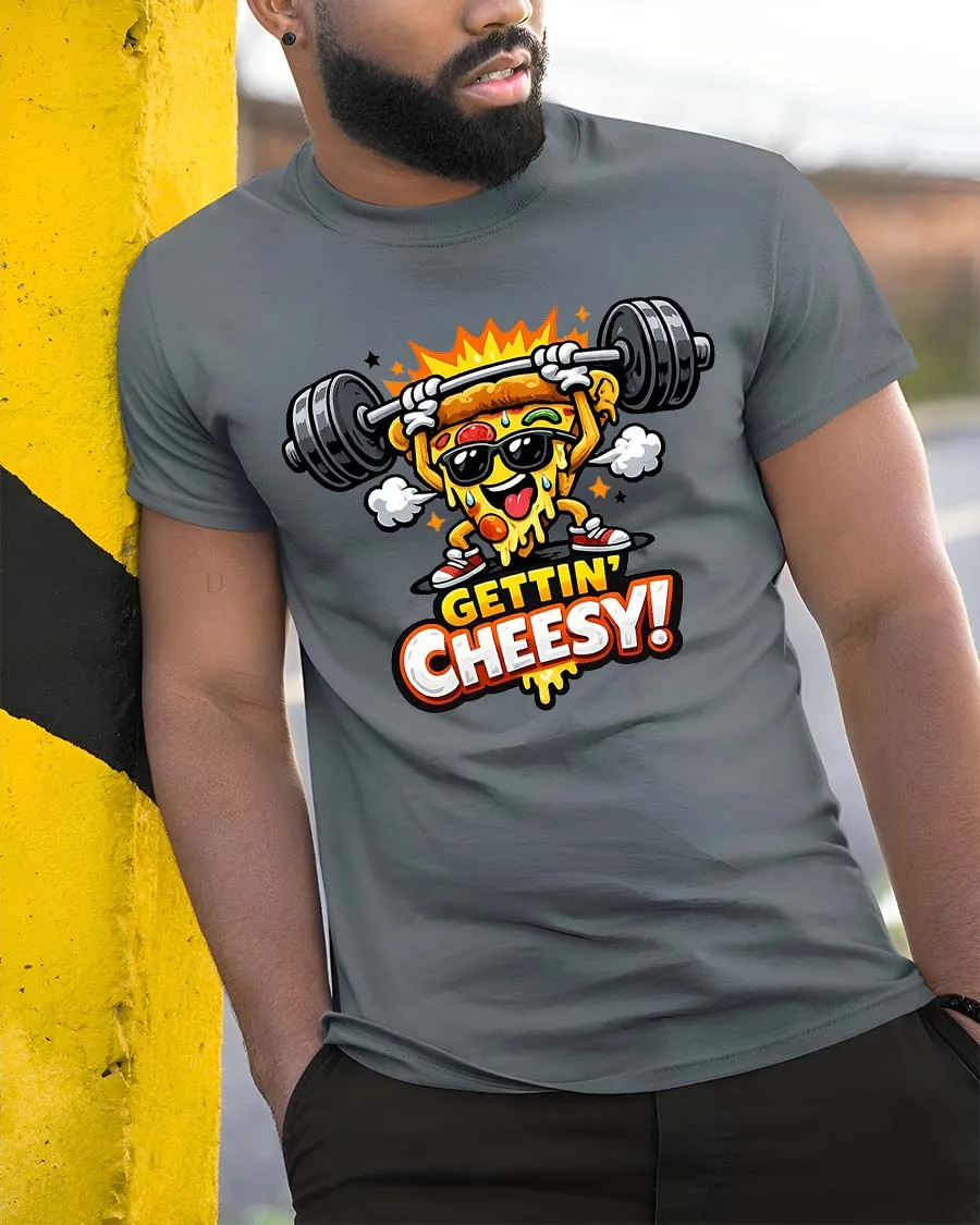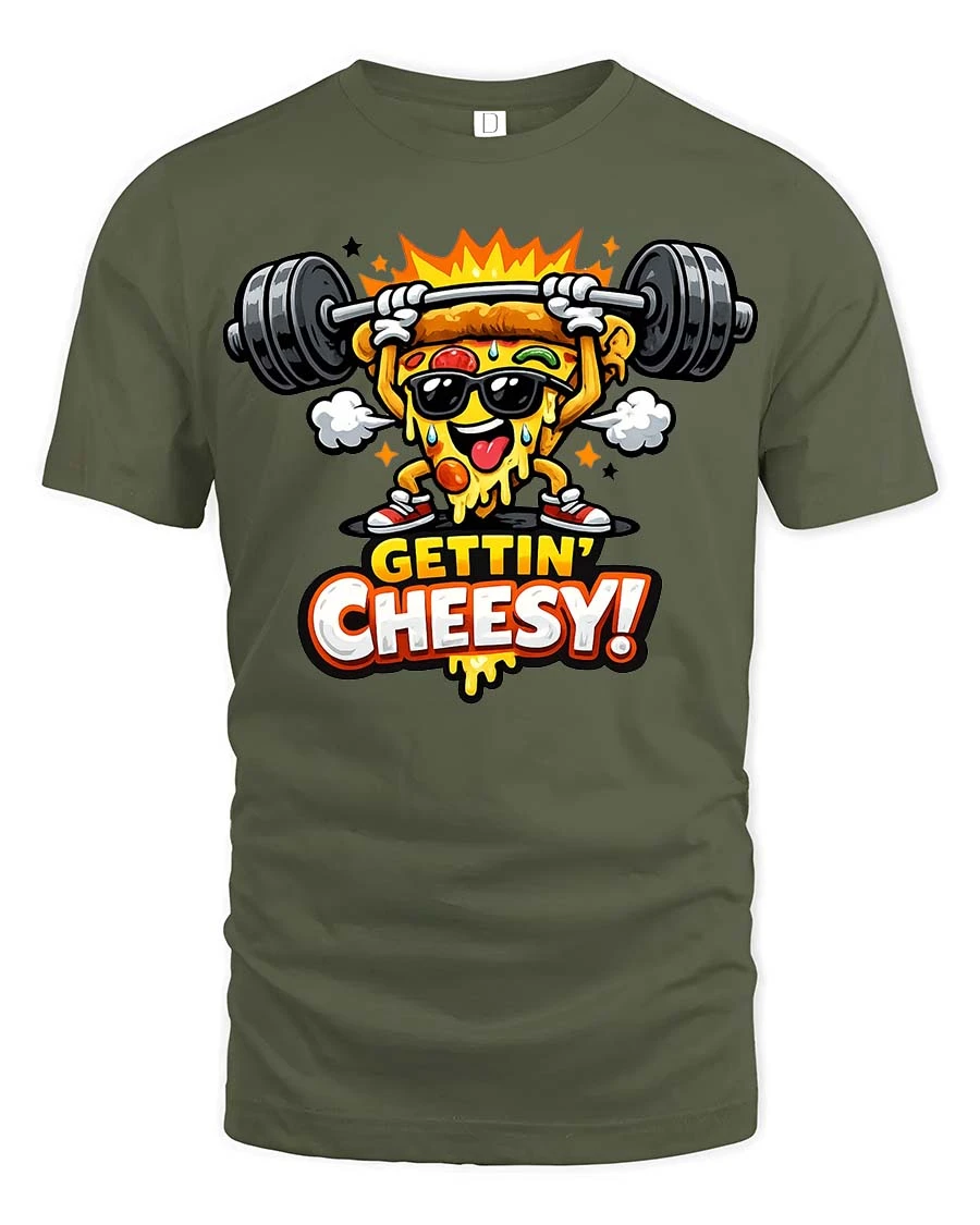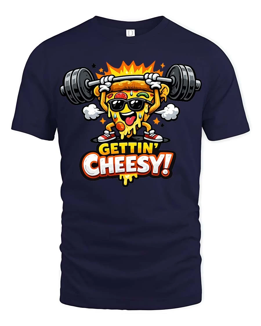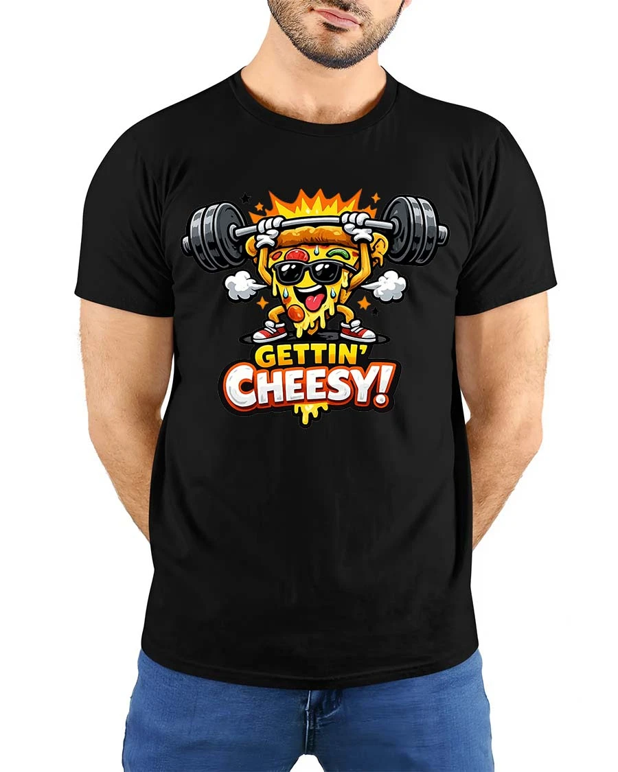Gettin Cheesy Pizza Gym T-Shirt Funny Workout Graphic Tee is the perfect mix of humor, fitness, and food love.