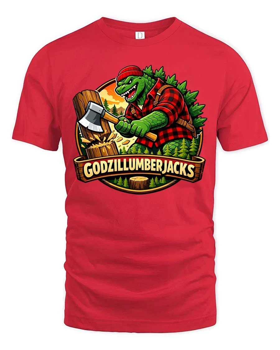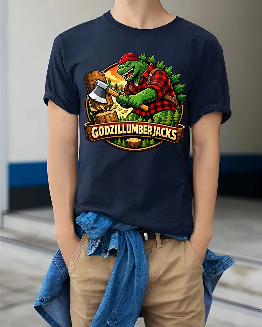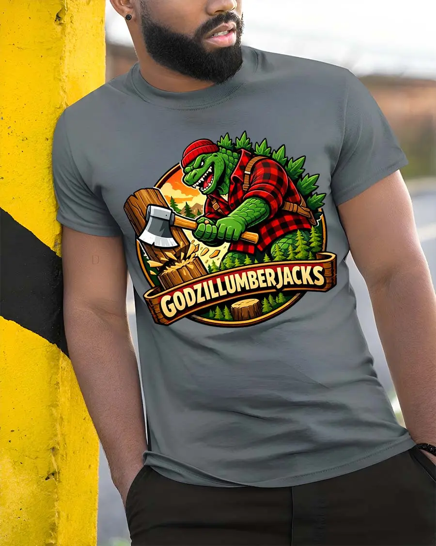 Godzillumberjack Graphic T-Shirt is a hilarious and creative design that combines monster fun with rugged outdoor style.
