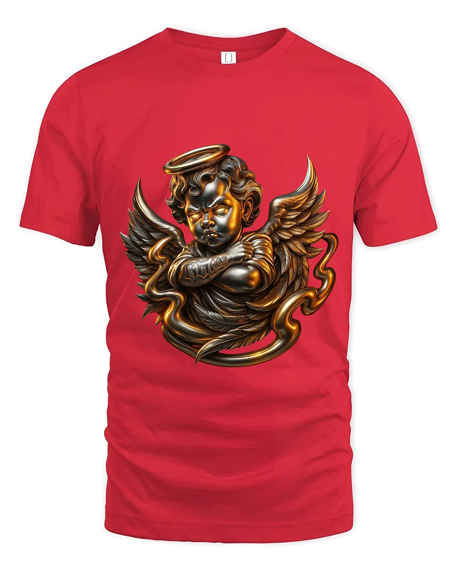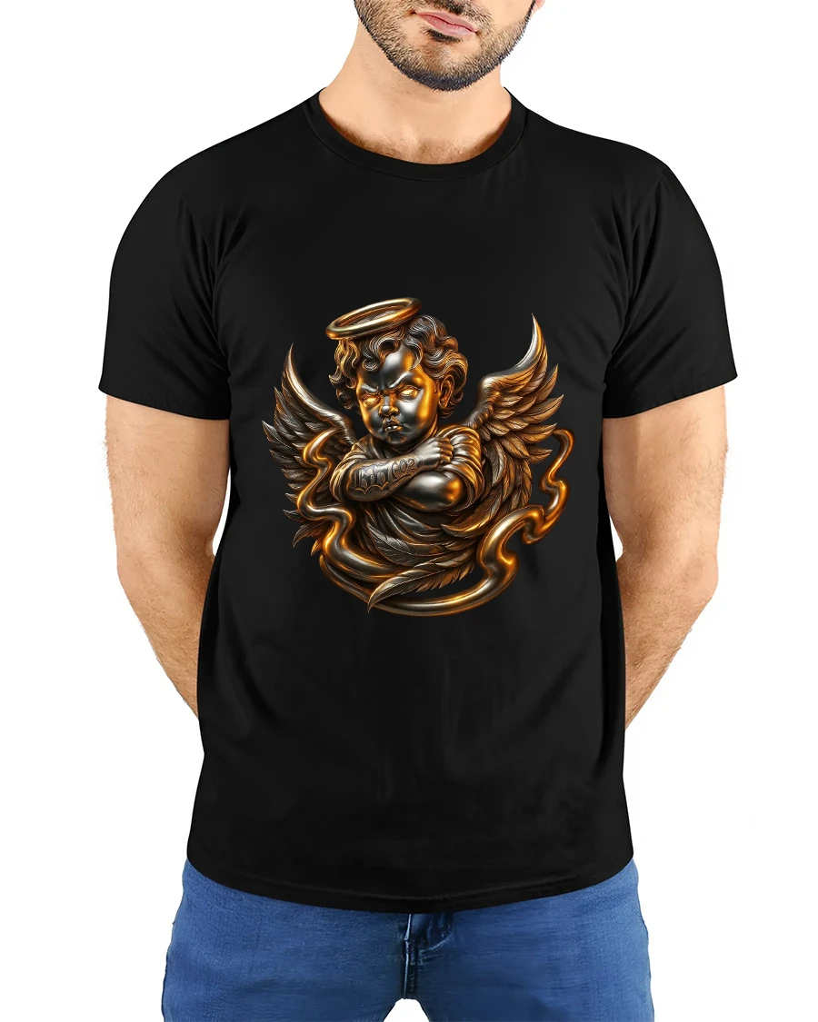 The Golden Angel Cherub Art Tee Divine Fantasy Graphic T Shirt delivers a powerful blend of elegance, symbolism, and dramatic artistry.