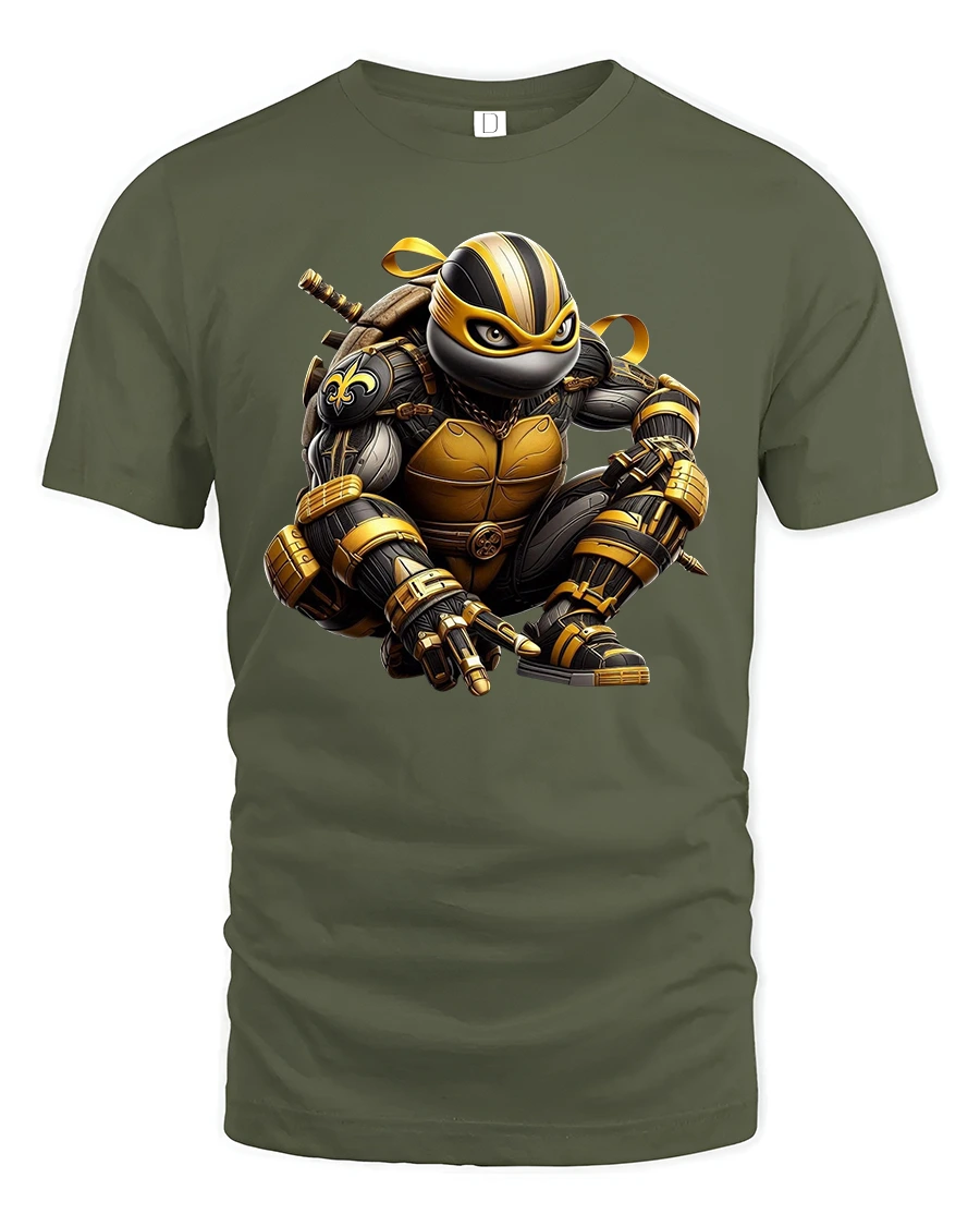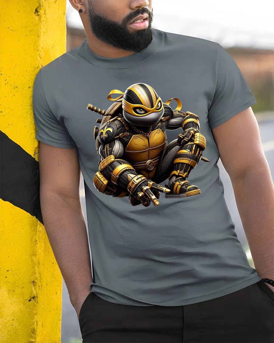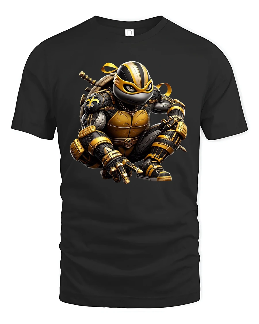 Featuring a black-and-gold armored ninja in a dynamic crouch, this tee captures the perfect mix of stealth, strength, and futuristic style.