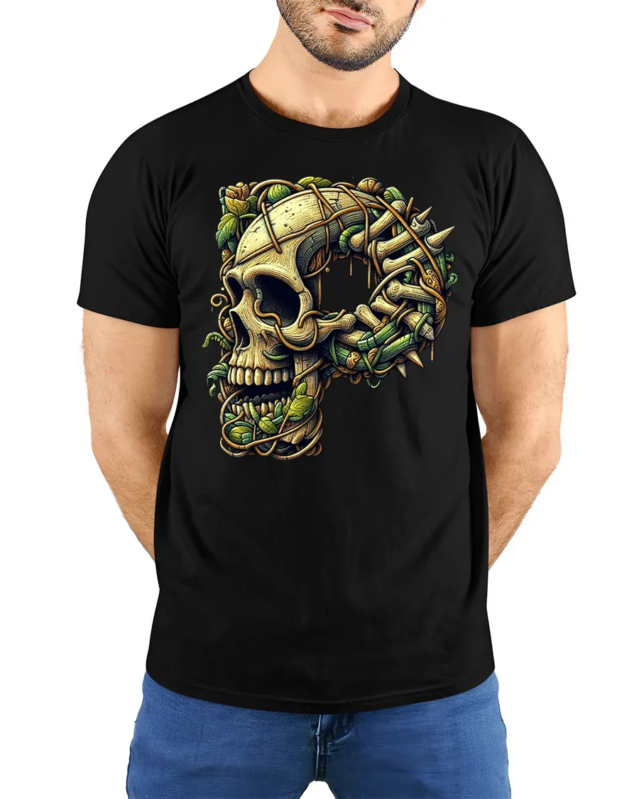 Made with high-quality fabric, this skull vines t-shirt is both soft and durable, offering comfort for everyday wear while keeping your look edgy and stylish. The intricate vine artwork adds depth to the skull design, making it ideal for gothic fashion lovers, Halloween outfits, or anyone who enjoys bold graphic tees.