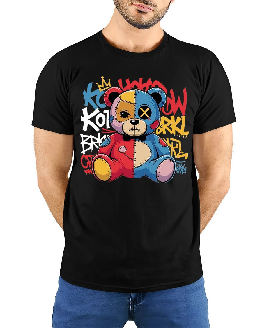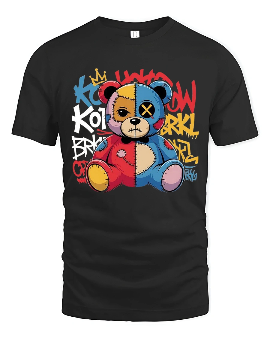 Graffiti Patchwork Teddy Bear Art Tee Urban Street Style is designed for everyday comfort and lasting wear.