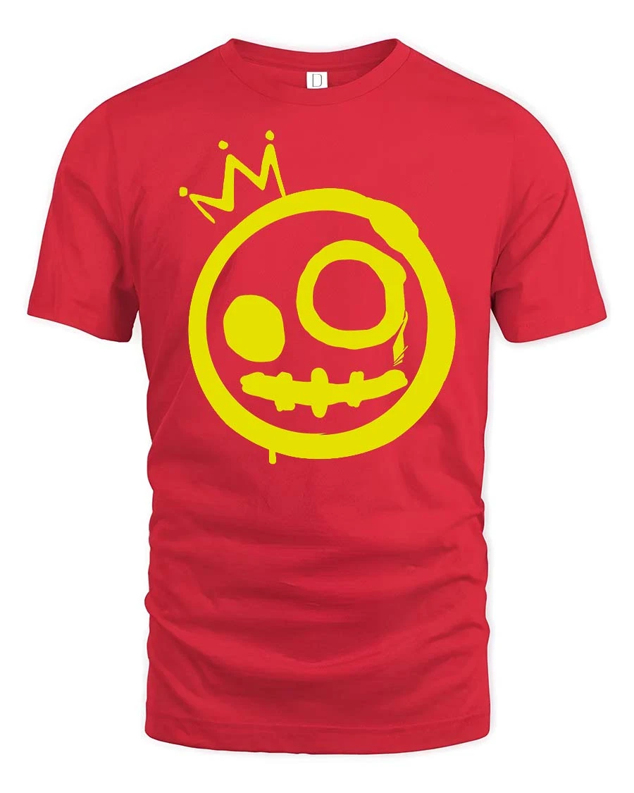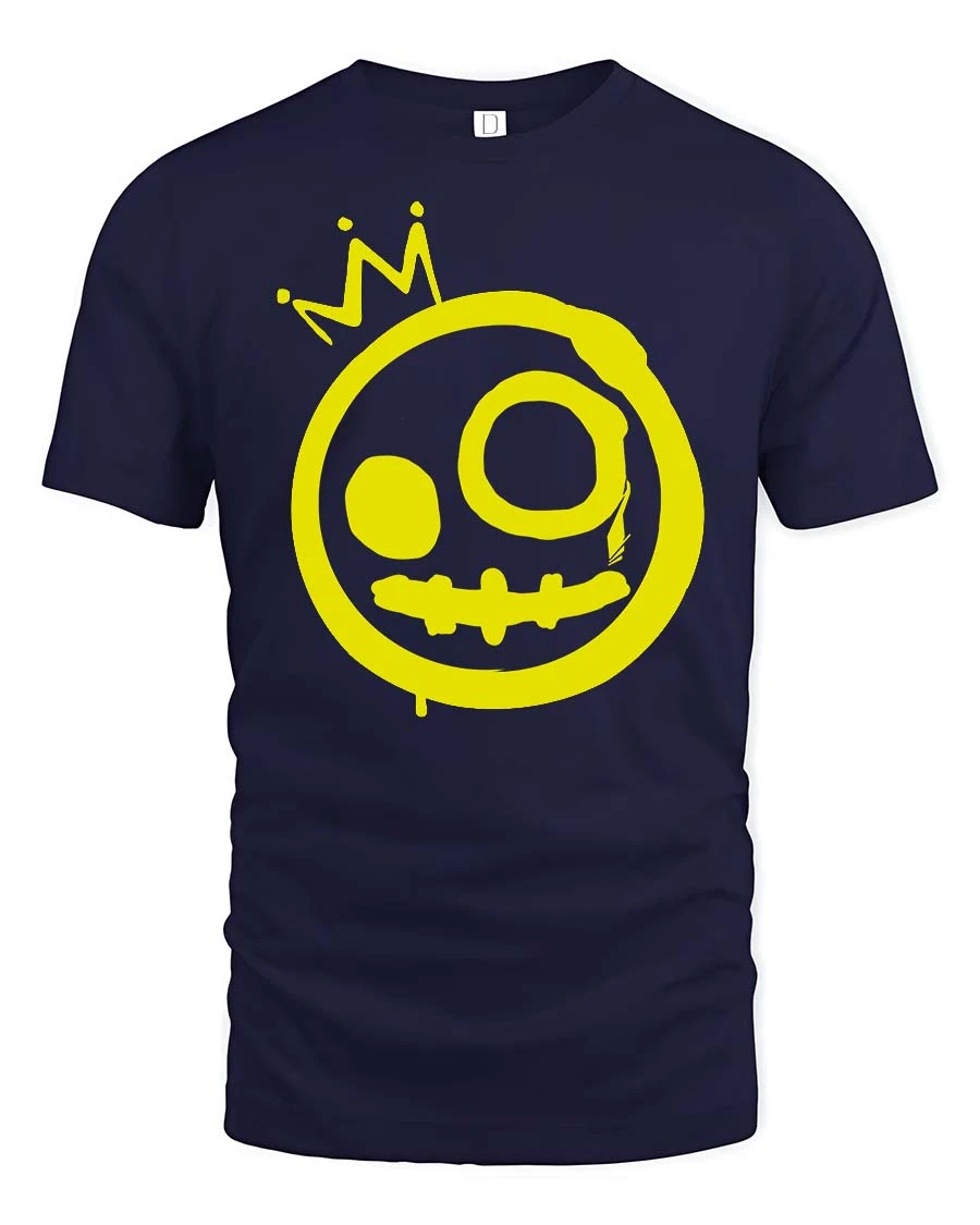 Featuring a hand-drawn smiley face with a crown in a graffiti style, this design creates a simple yet eye-catching visual.