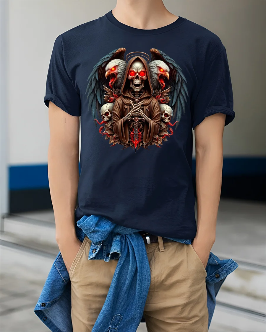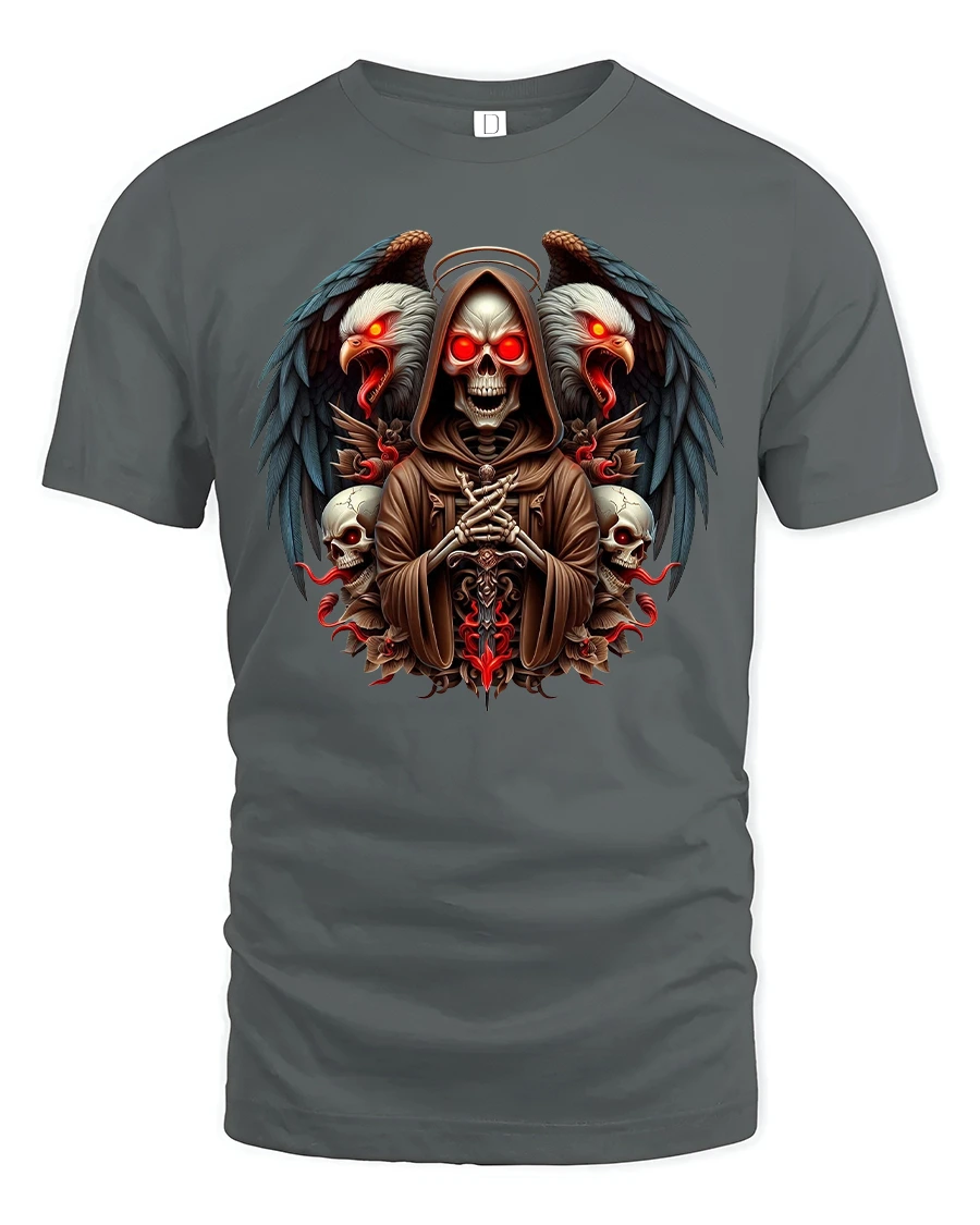 Embrace your dark side with this Grim Reaper Dark Wings Skull Master T-Shirt.