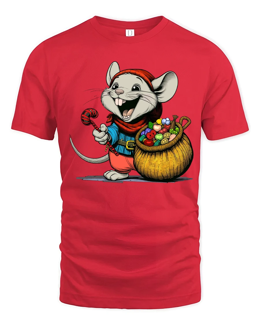 The Happy Cartoon Mouse Candy Collector Art Tee brings joy and playful charm to everyday fashion.