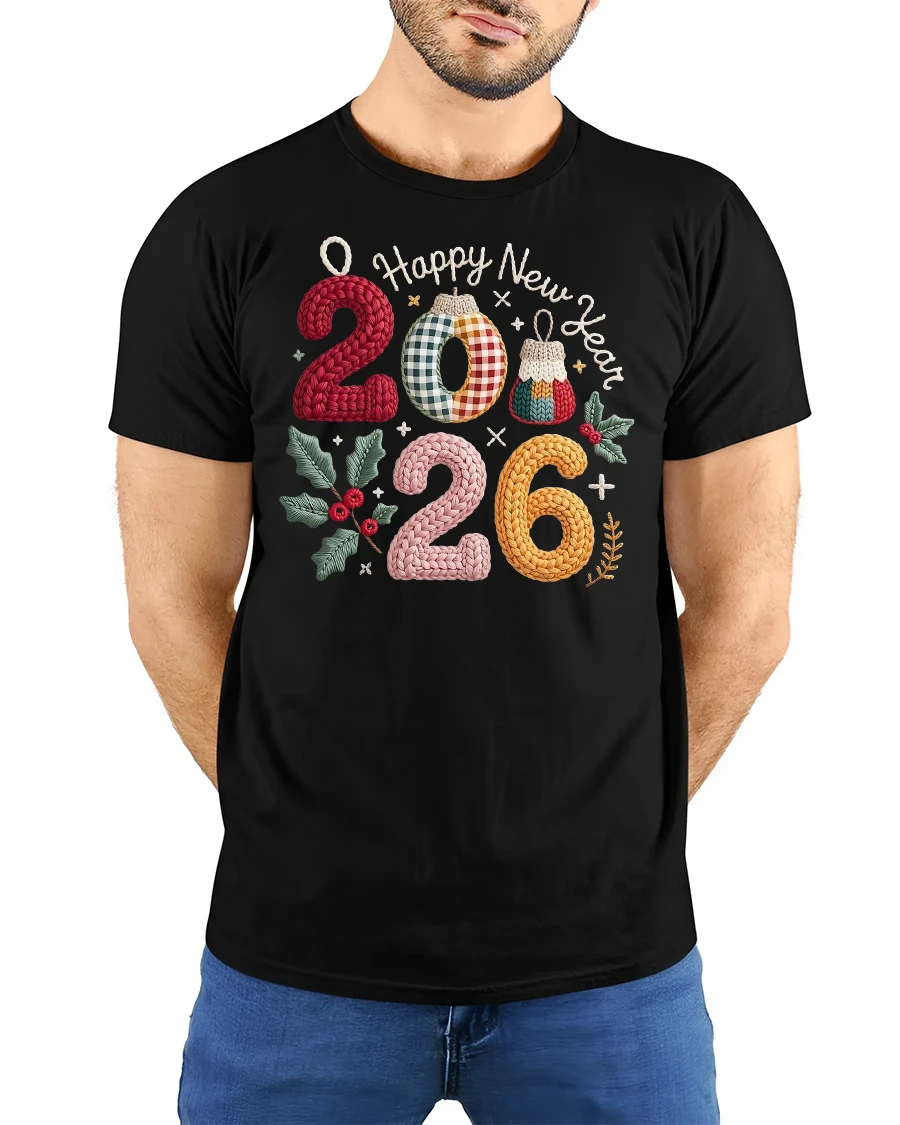 Happy New Year 2026 Knitted Numbers Graphic T Shirt Cozy Festive Tee