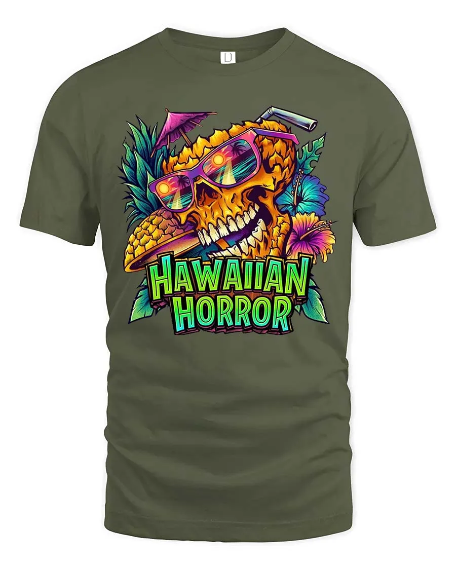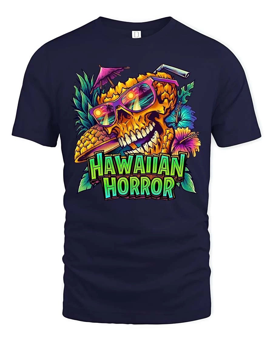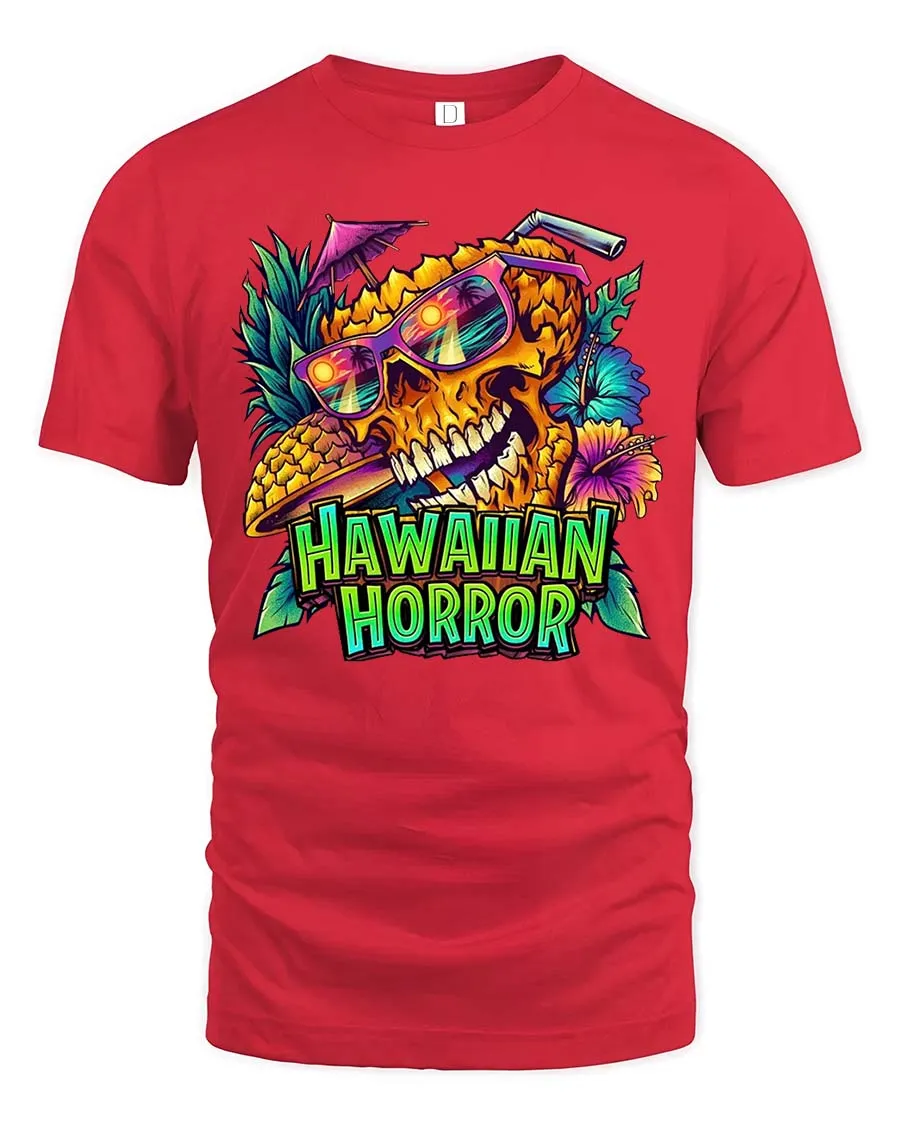 Hawaiian Horror Skull Tropical Neon Graphic Style T-Shirt blends vibrant island energy with bold edgy visual impact.