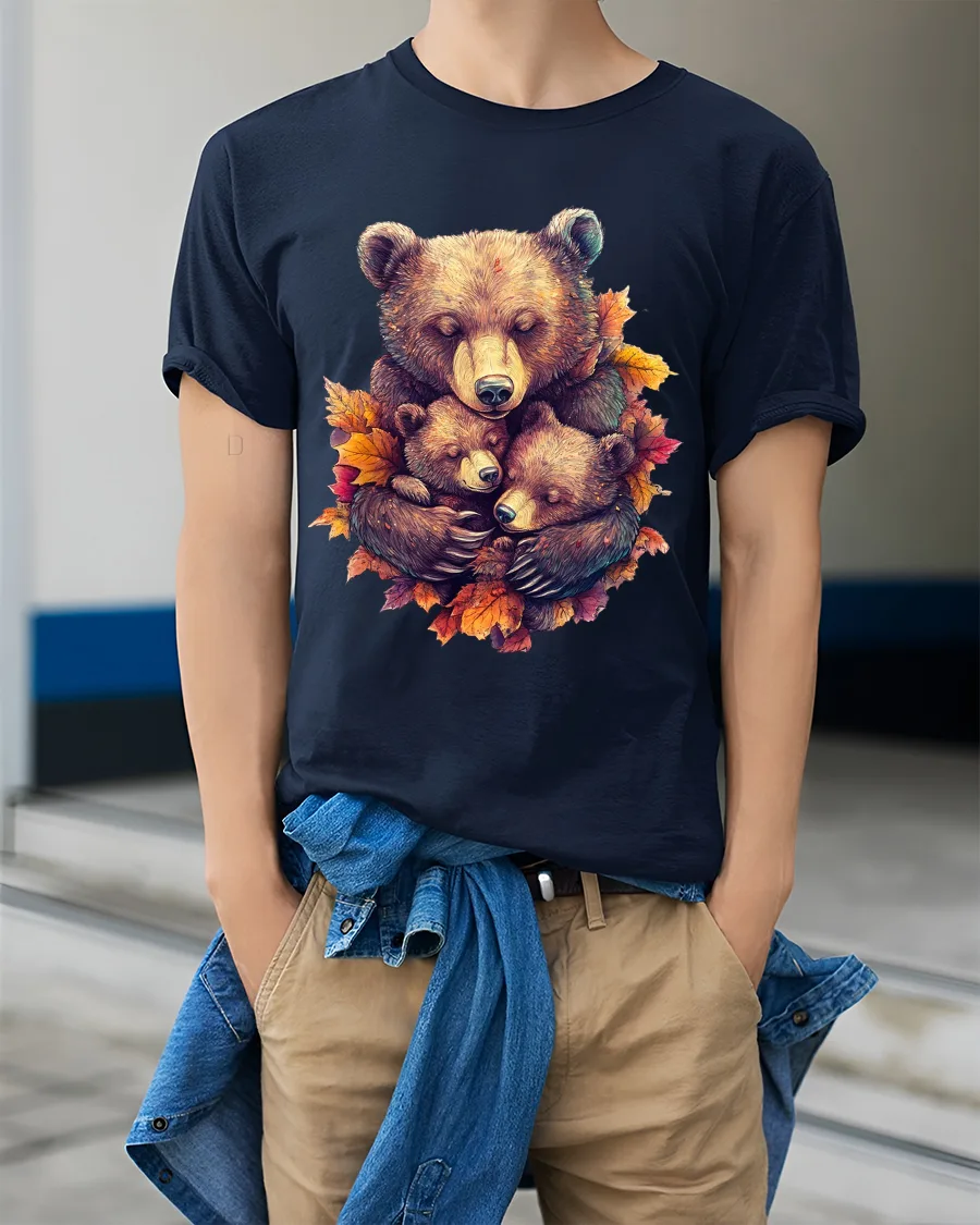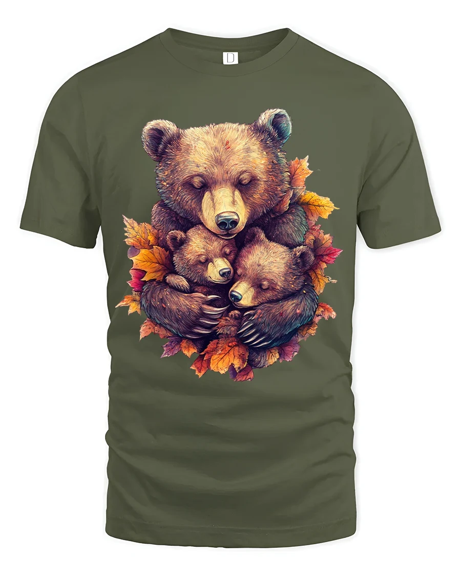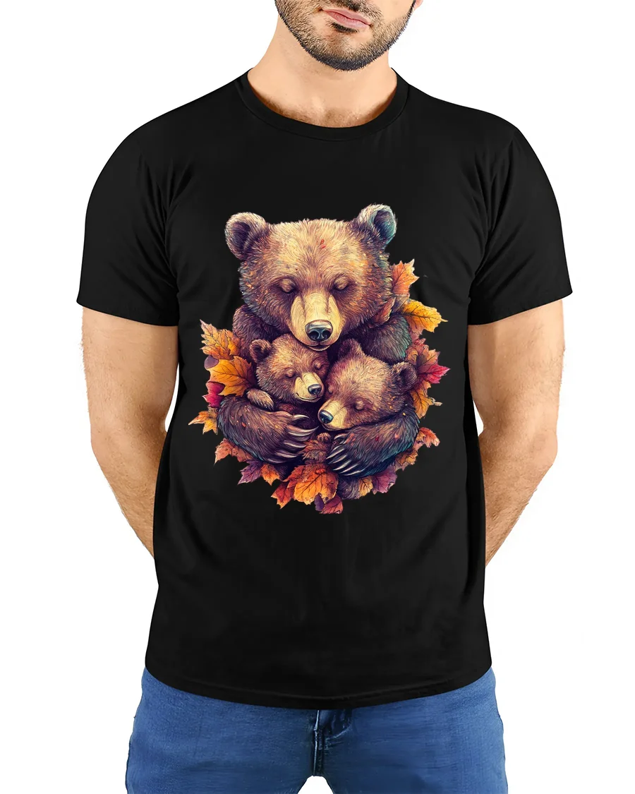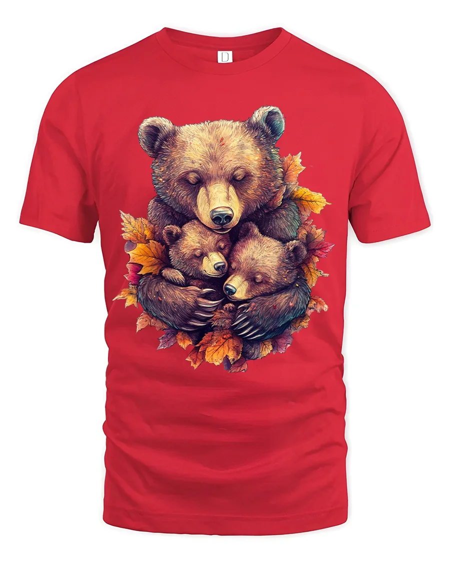 The Heartwarming Bear Family Autumn Illustration Graphic T Shirt captures a beautiful moment of love, warmth, and connection in the wild.