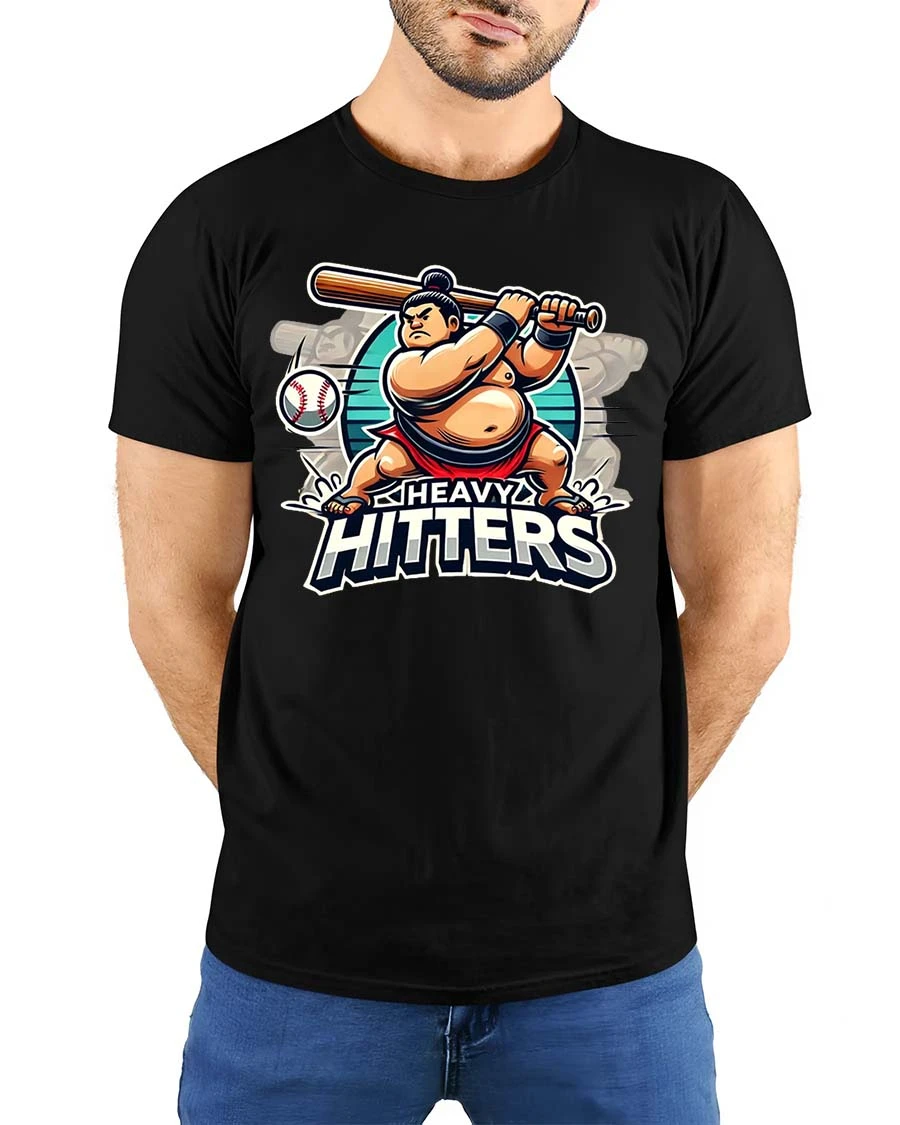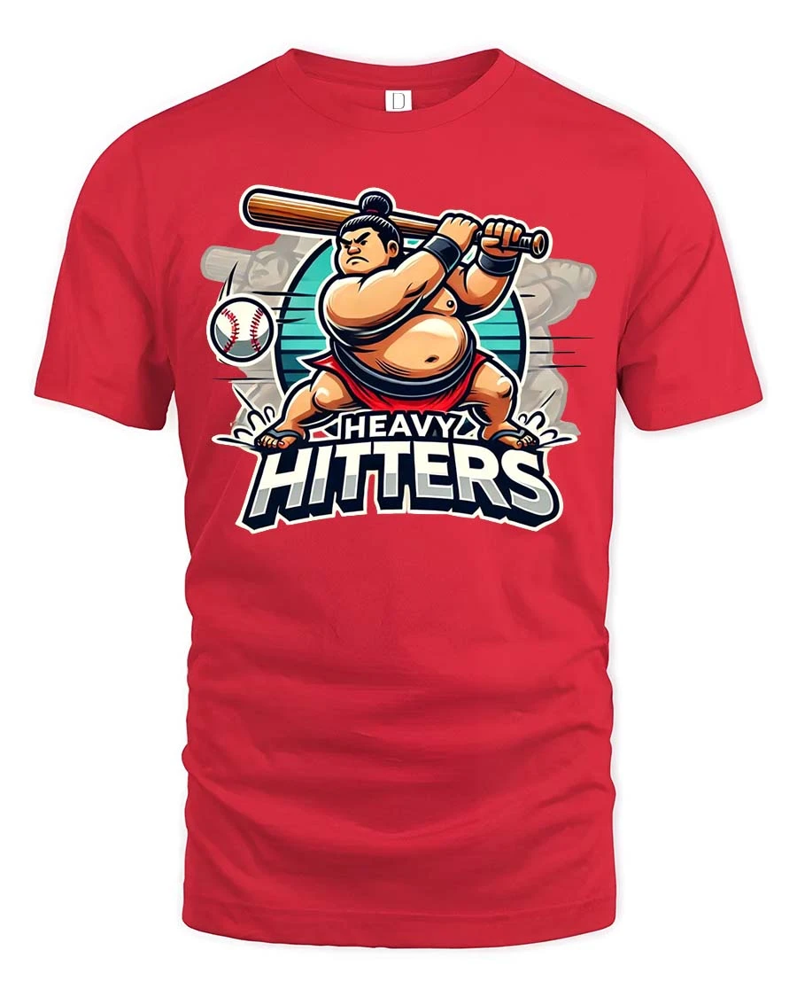 The Heavy Hitters Funny Baseball Power Hitter Graphic T-Shirt features a bold cartoon-style batter ready to crush the ball with serious power. The fun illustration and “Heavy Hitters” slogan capture the excitement and strength of baseball’s biggest sluggers in a playful and energetic design.
