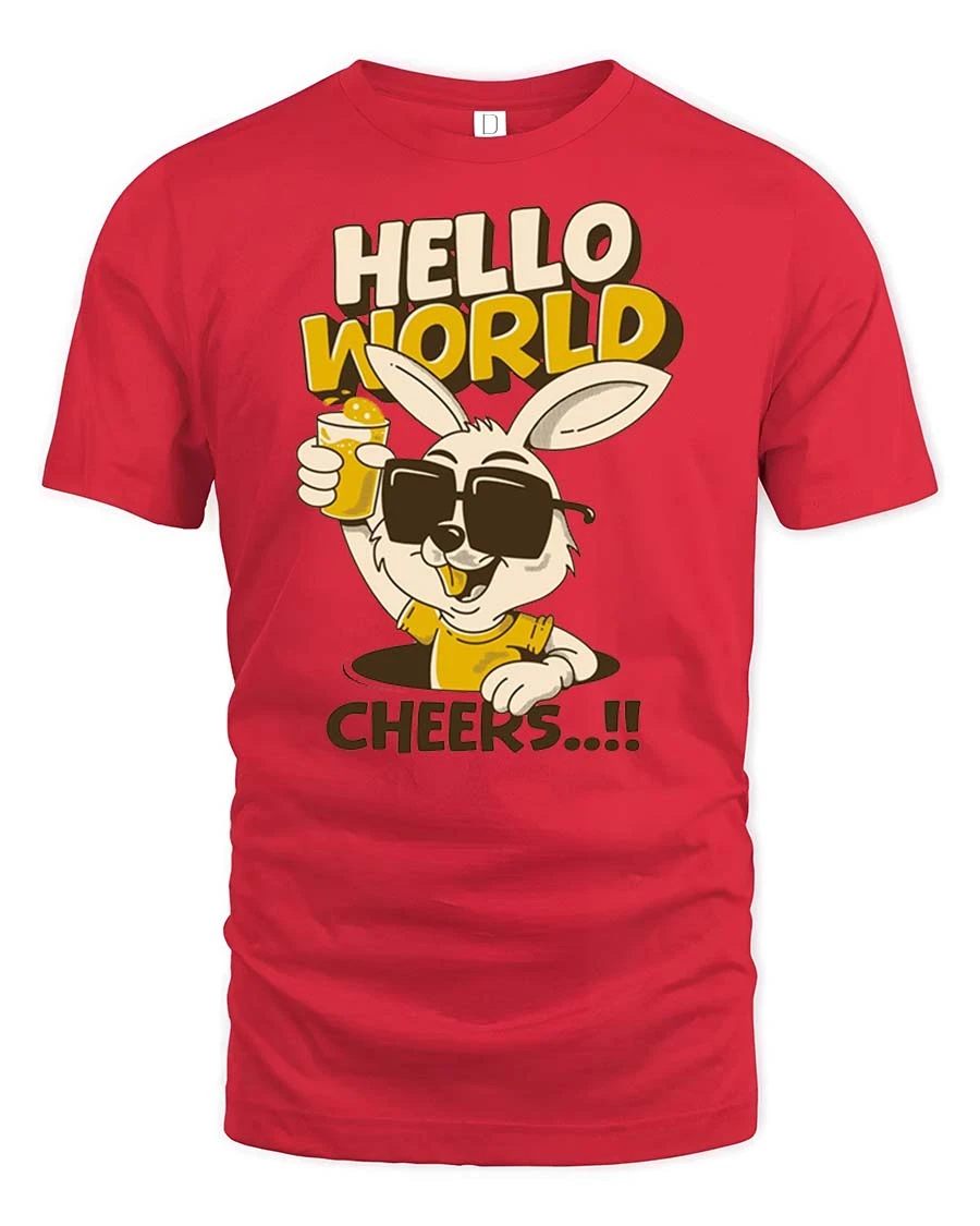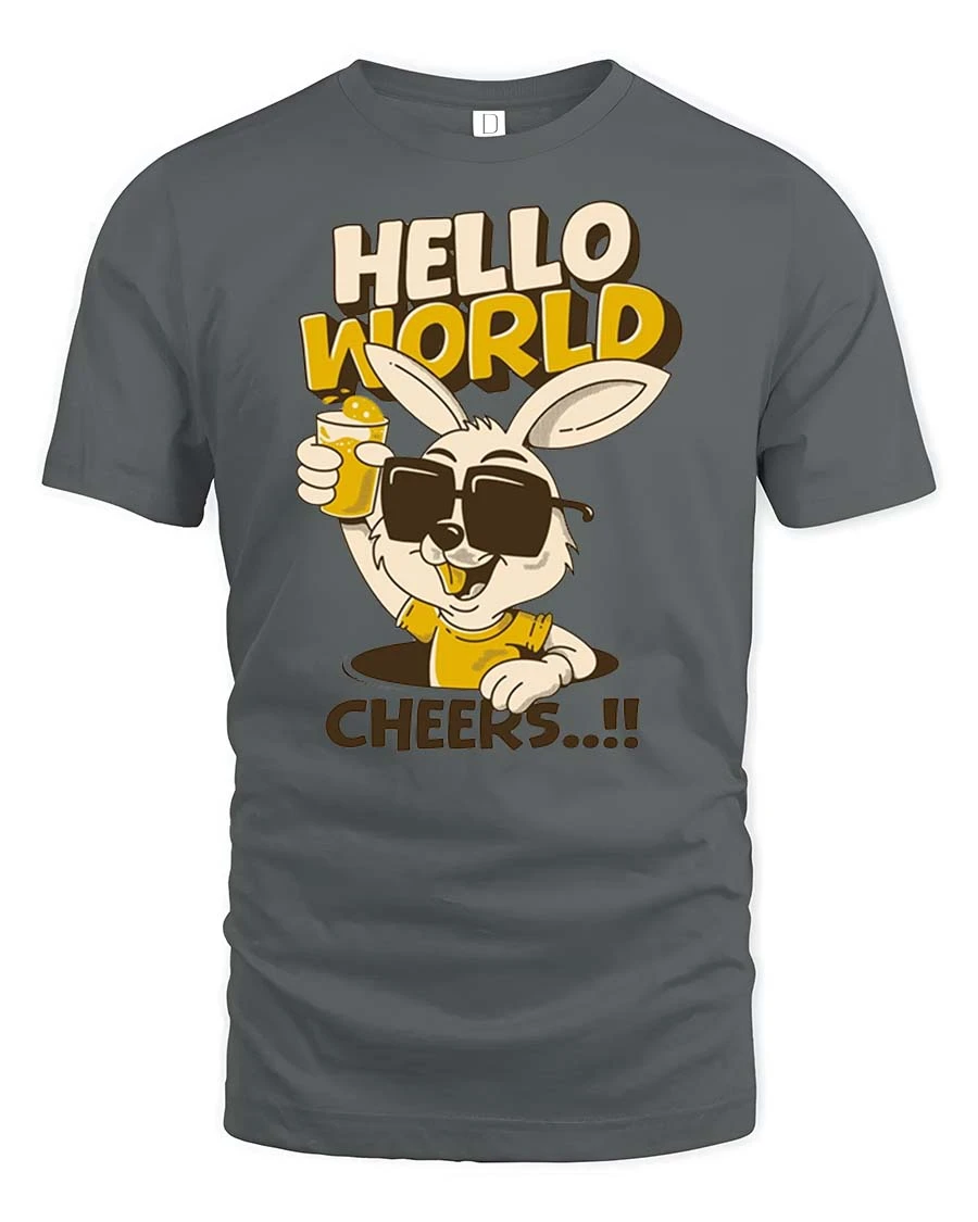 Home Hobbies Hello World Cheers Rabbit Funny Party Graphic Cool T-Shirt
