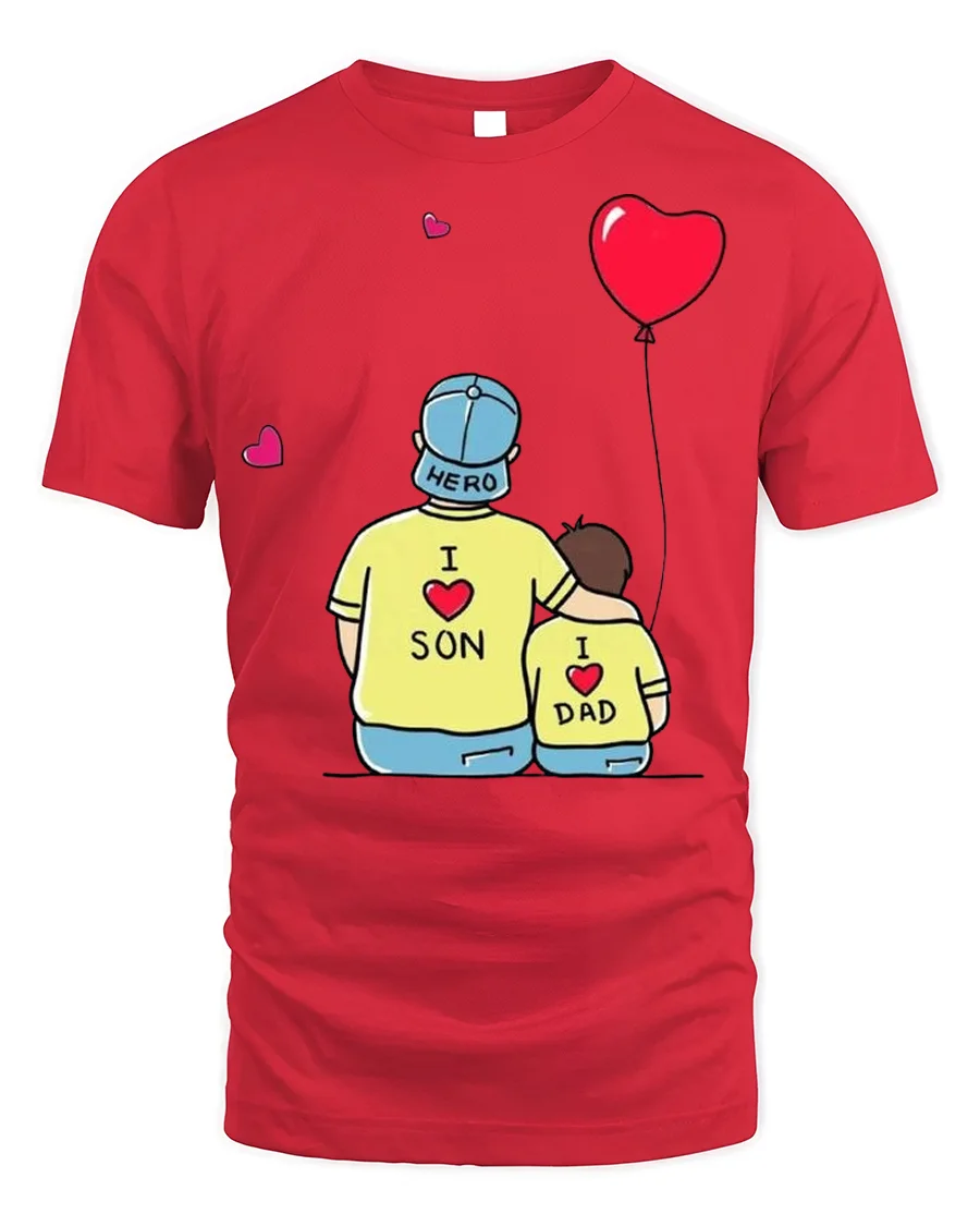 Hero Son Dad Tee - Father and Son T-Shirt - red t-shirt on white background