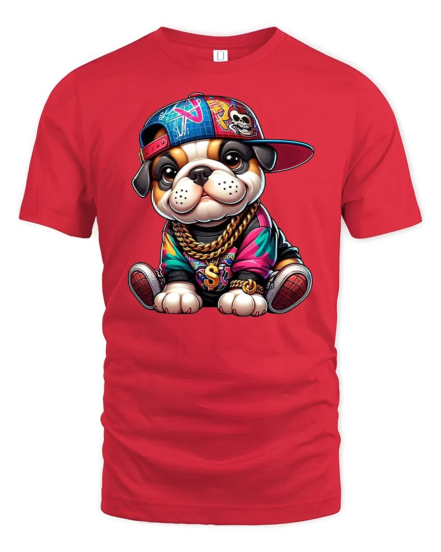 Hip Hop Bulldog Puppy Cool Streetwear Graphic Tee is the perfect mix of fun, fashion, and personality. Featuring an adorable bulldog puppy dressed in a colorful hip-hop outfit, complete with a snapback cap, gold chain, and sneakers, this shirt is made for anyone who loves dogs with attitude. The playful design makes it a standout piece for casual wear, parties, or street fashion.