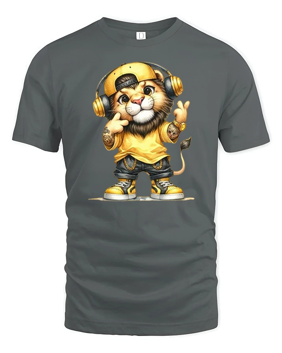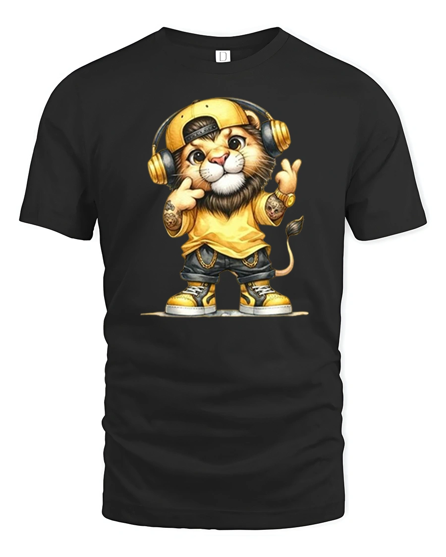 Hip Hop Lion Graphic Tee With Headphones Street Style Art brings bold confidence and playful music culture into a standout graphic design.