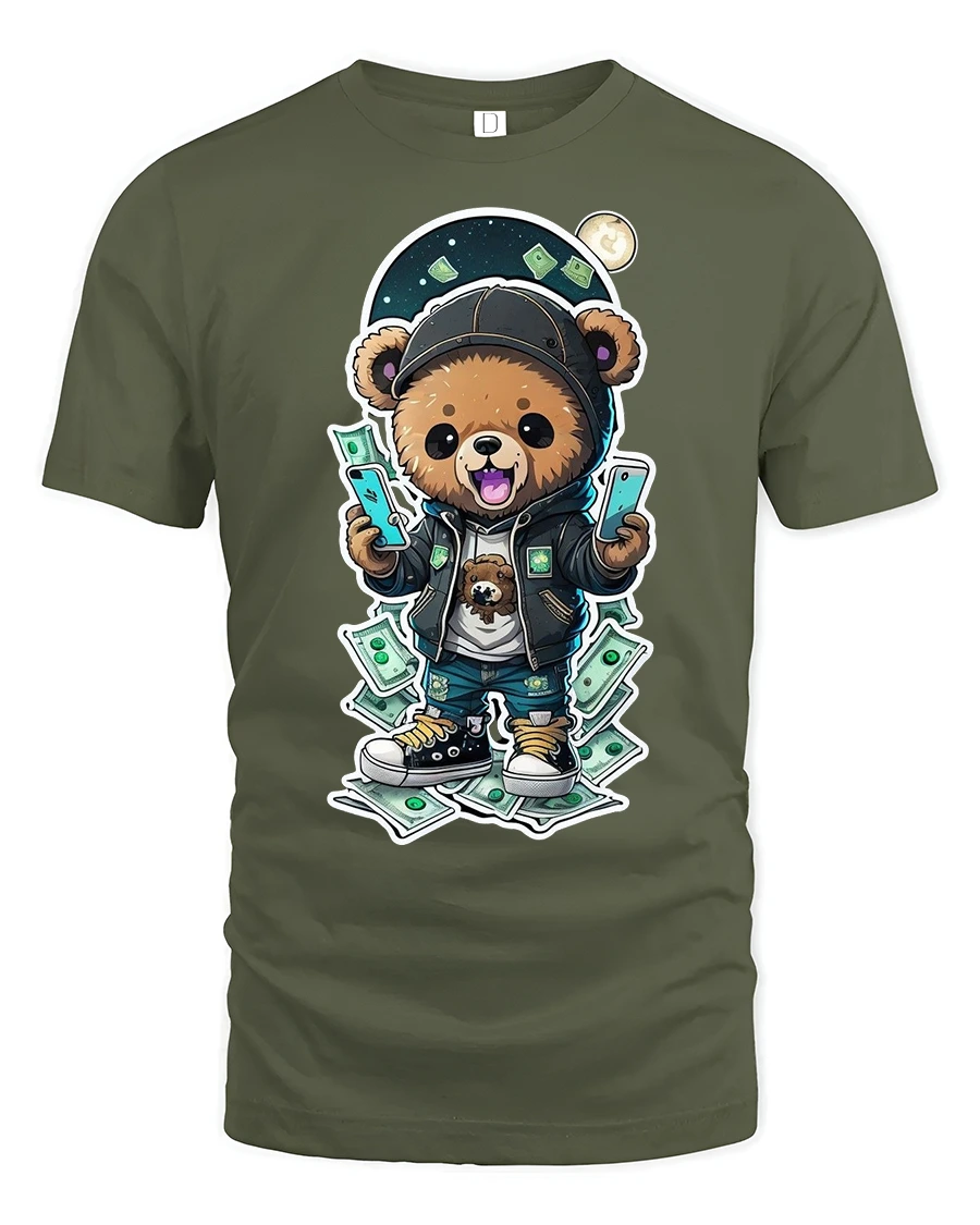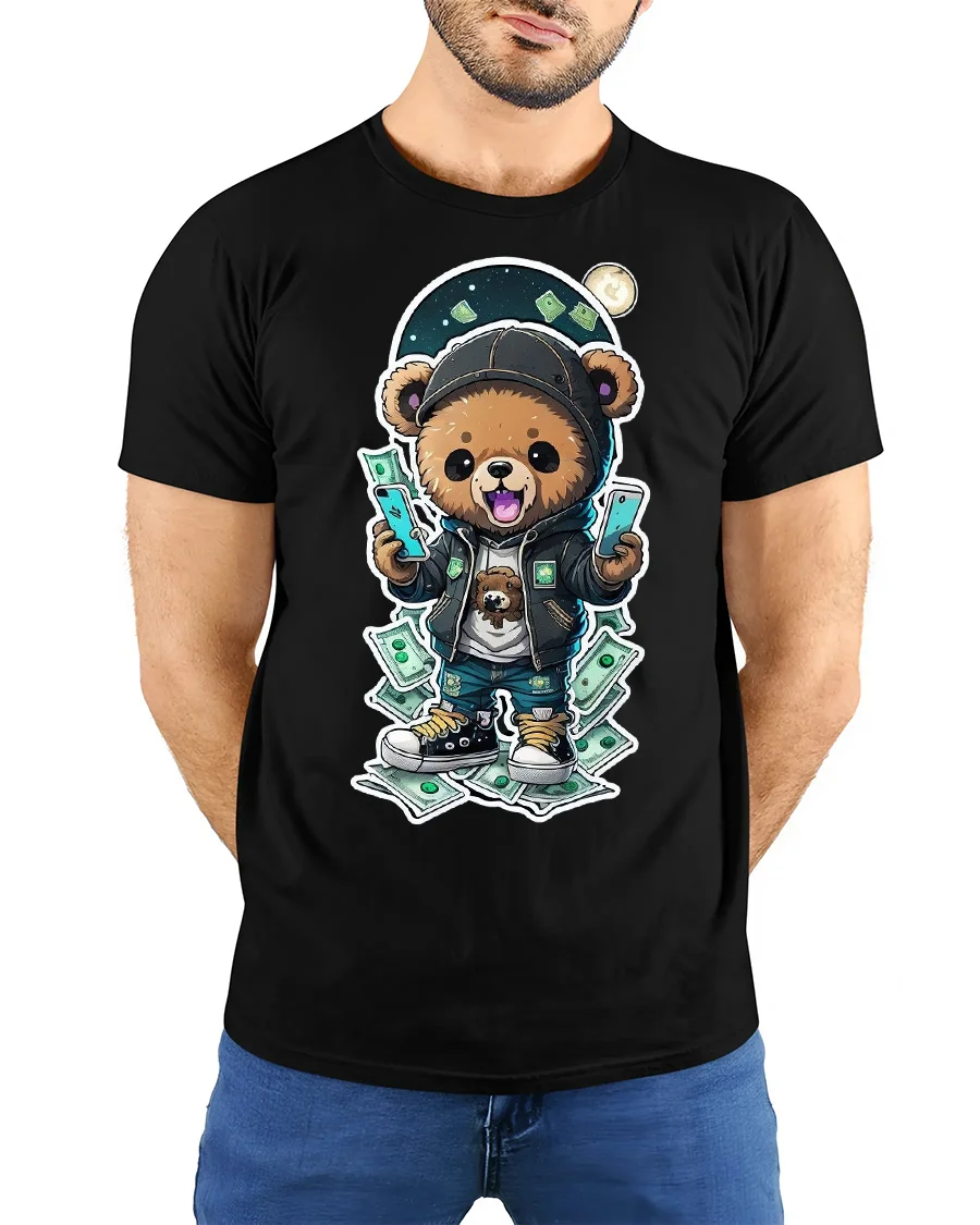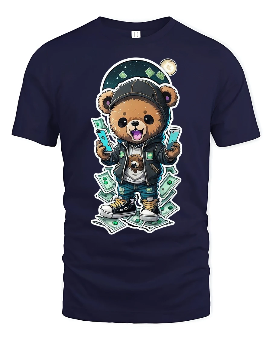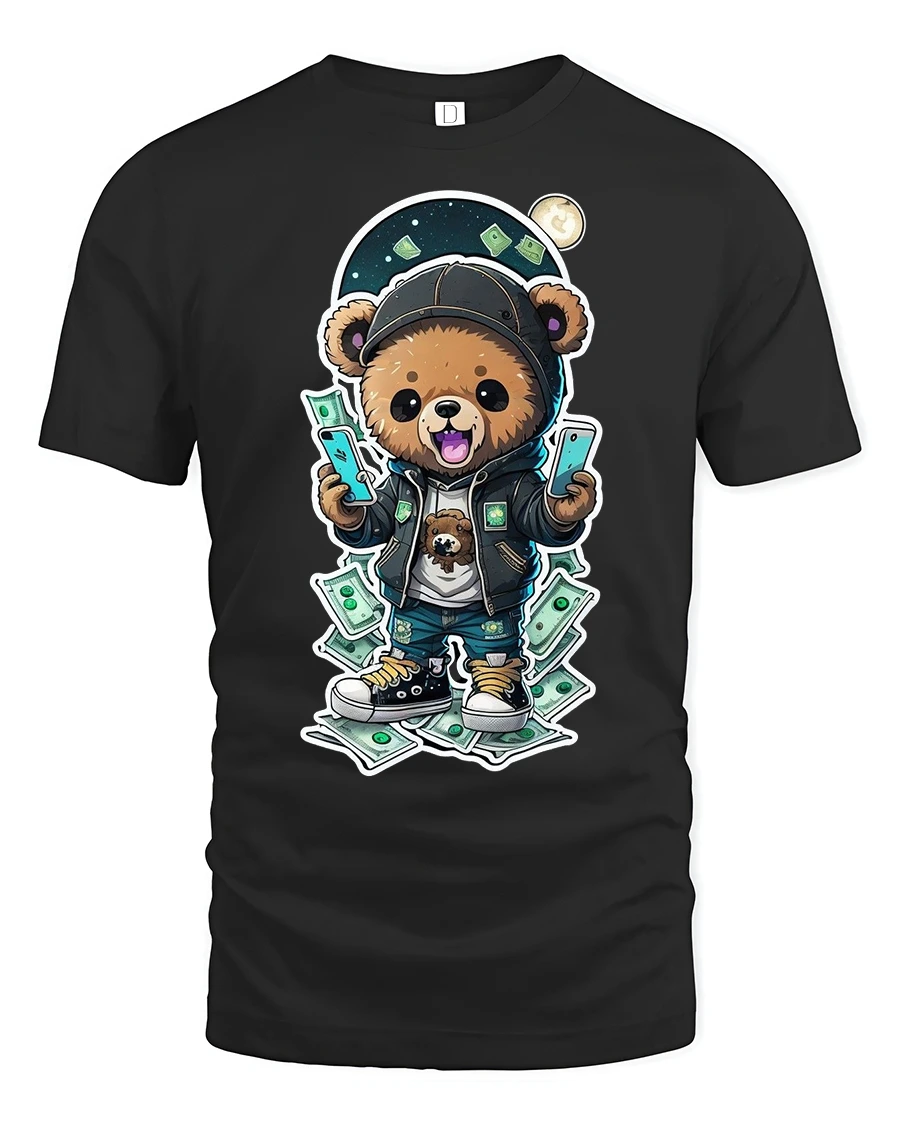 Made from premium cotton, this money bear t-shirt is soft, breathable, and designed for lasting comfort. The high-quality print pops with vibrant colors, making the design stand out whether you’re hitting the streets, chilling with friends, or showing off your unique style on social media. It’s the kind of shirt that gets noticed instantly for its fun and confident vibe.