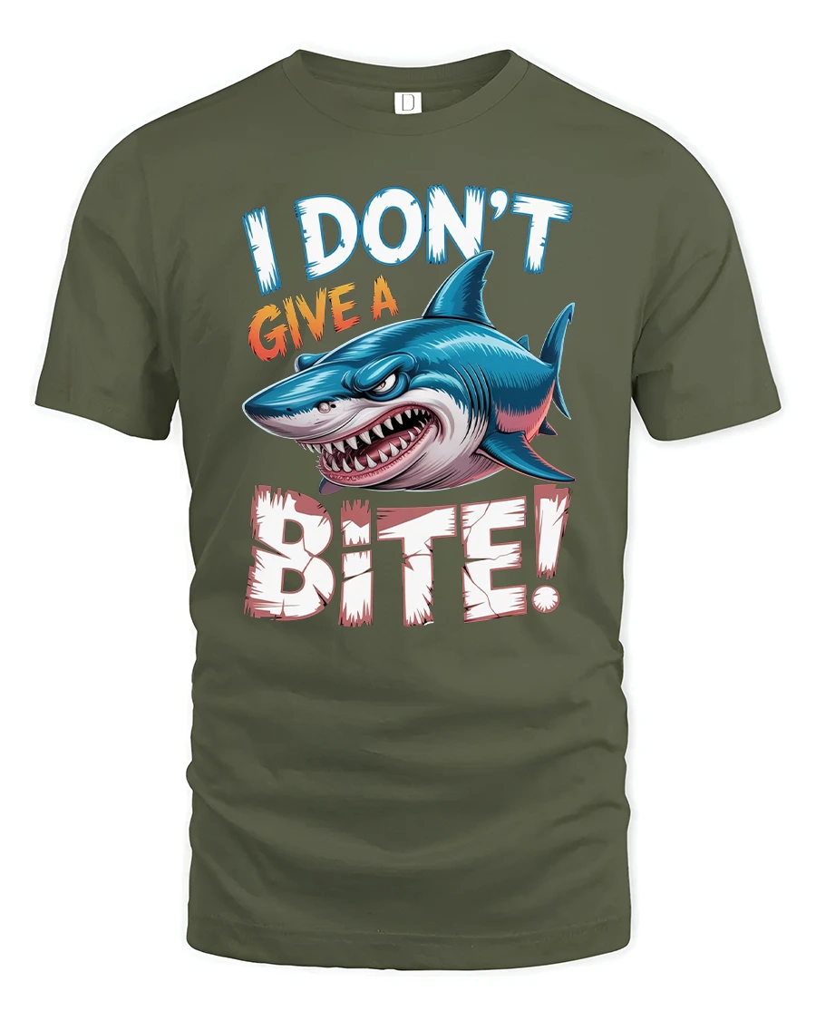 I Dont Give A Bite Shark Graphic T Shirt Funny Attitude Art - military green t-shirt on white background