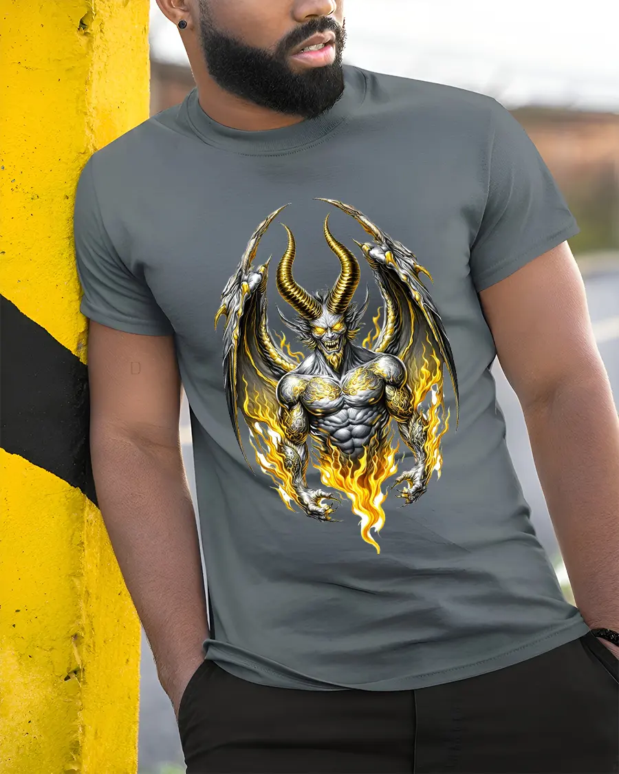 Infernal Demon Lord Fire Wing Dark Fantasy Graphic Tshirt Power delivers a commanding presence with striking dark fantasy artwork.