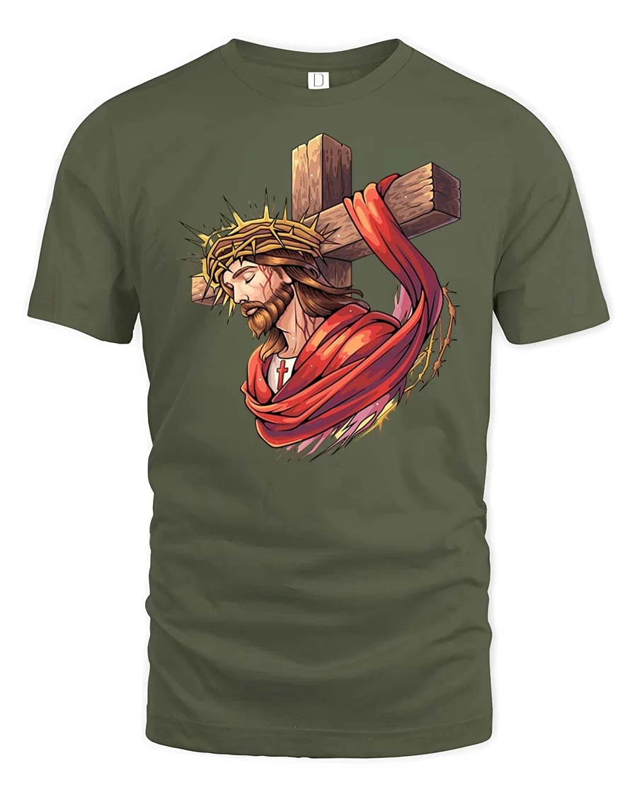 This christian graphic tshirt combines traditional symbolism with modern illustration style, offering a balanced design that feels both timeless and visually appealing.