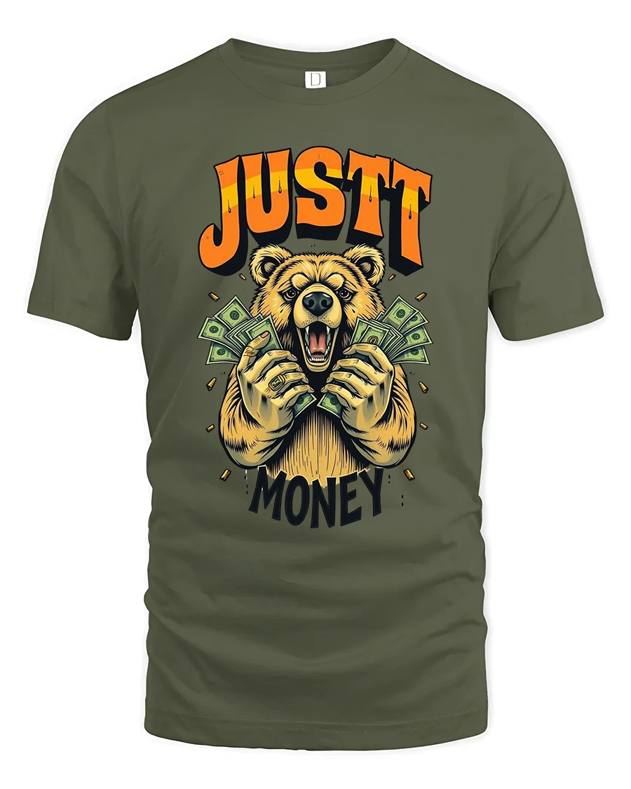 Just Money Bear T Shirt Funny Rich Bear Cash Graphic Tee - military green t-shirt on white background