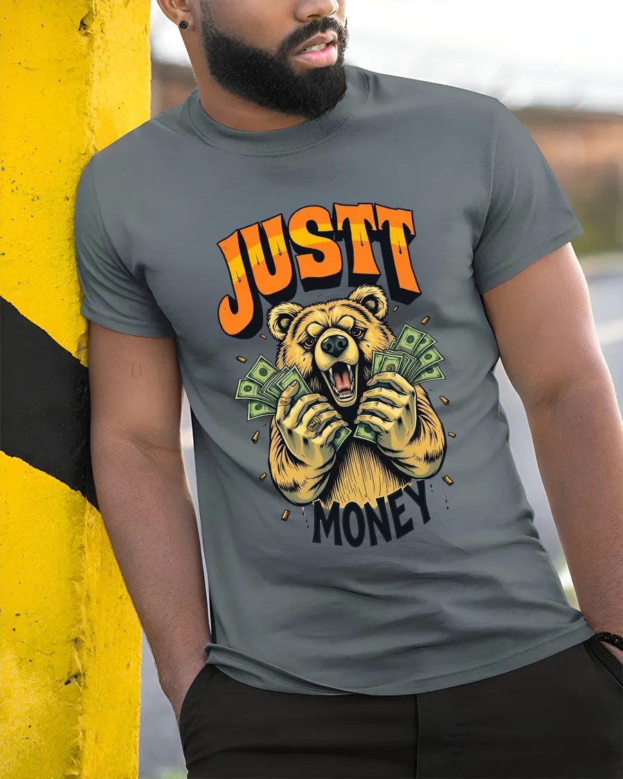 Just Money Bear T Shirt brings personality confidence and fun into one wearable design that feels modern and expressive.