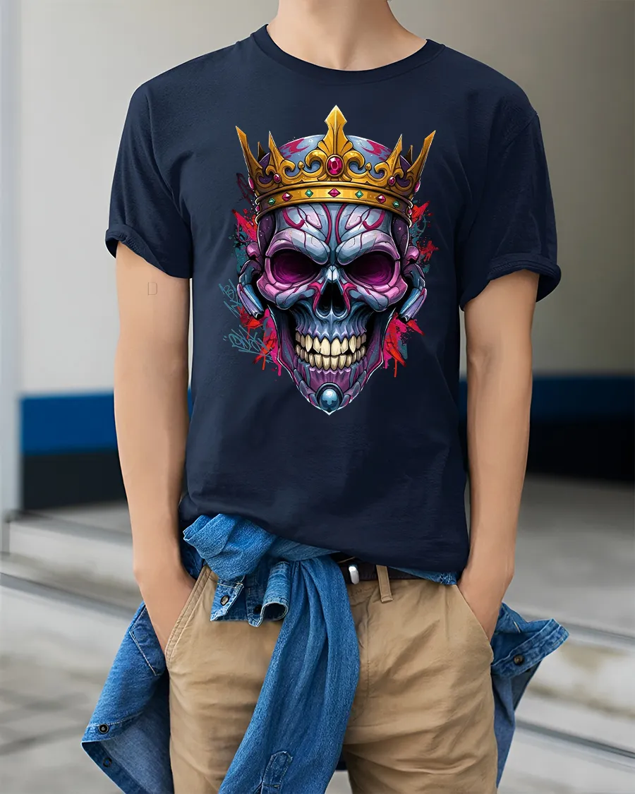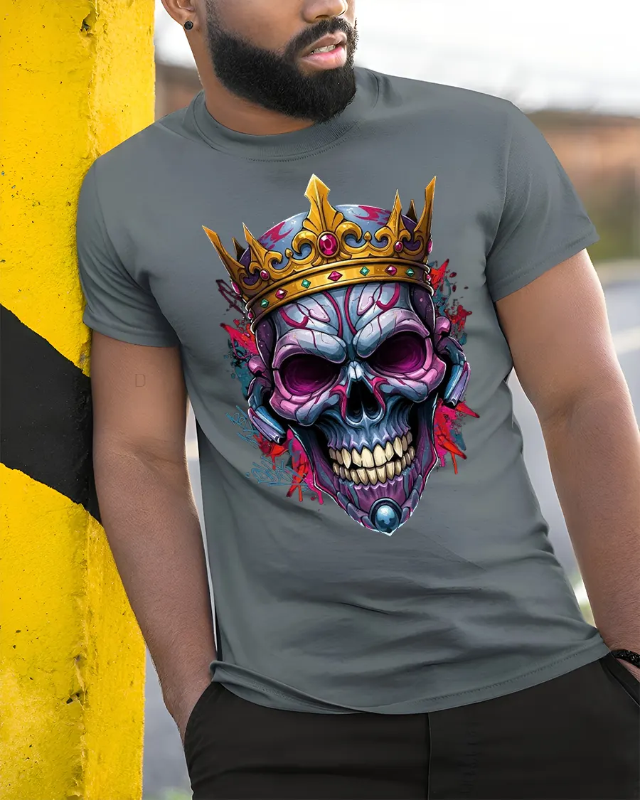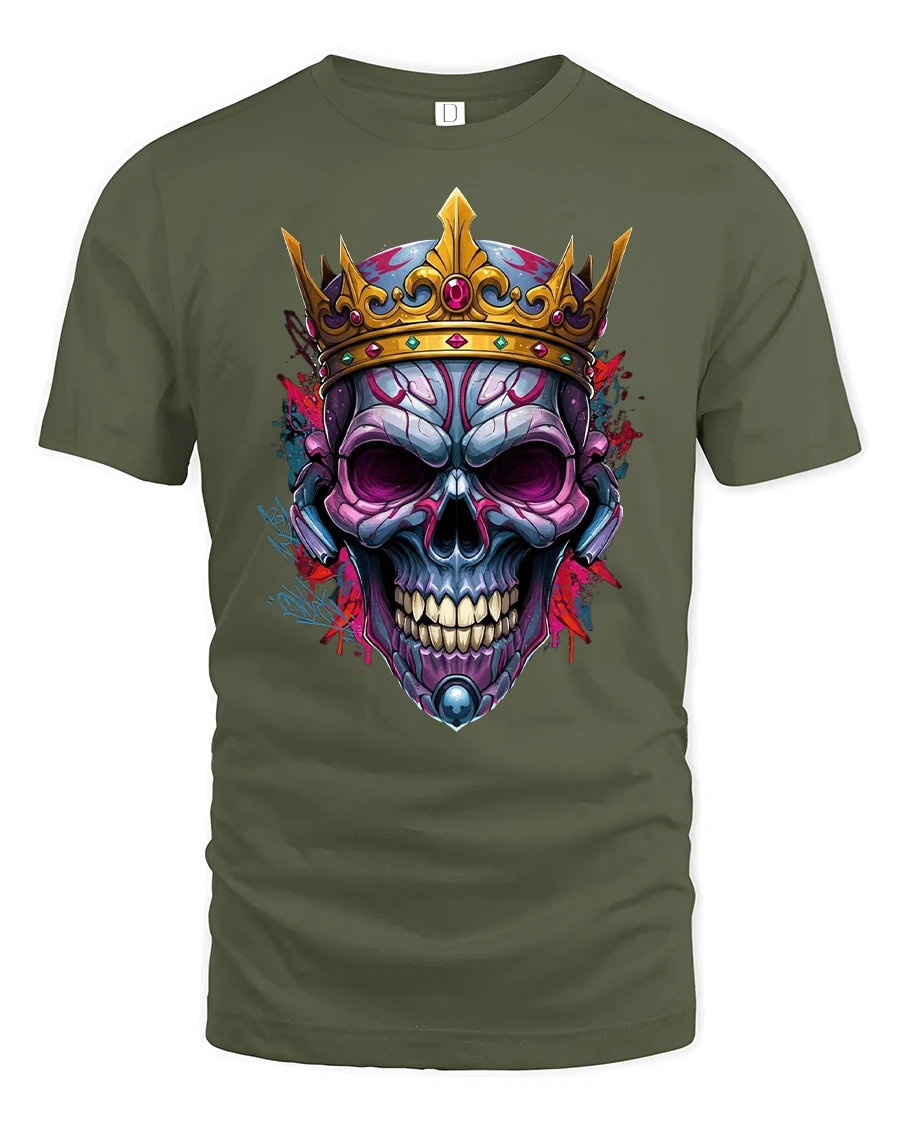 King Skull Crown Tee Dark Royal Skull Art Tshirt for Fans delivers a bold and powerful design perfect for anyone who loves dark fantasy, gothic themes, or striking artistic skull graphics. Featuring a fierce skull wearing a jeweled golden crown, this tee blends royalty with edge, making it a standout piece in any wardrobe. The vivid colors and detailed artwork create a dramatic visual impact that grabs attention instantly.