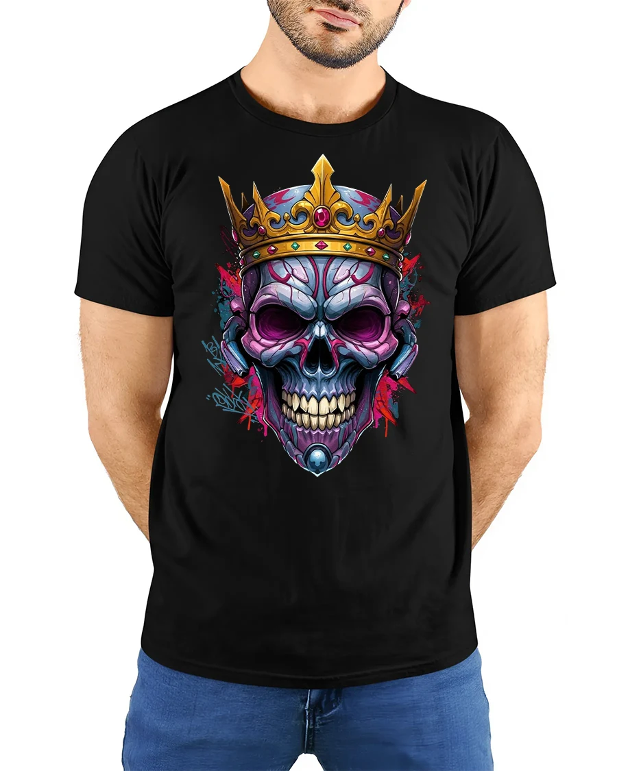 Made from soft and comfortable material, this tshirt is ideal for everyday wear, concerts, biker events, festivals, or casual outings. The high quality print highlights every detail of the crowned skull, ensuring long lasting vibrancy even after repeated washing. Fans of dark art, fantasy themes, and unique skull designs will appreciate this bold and expressive style.