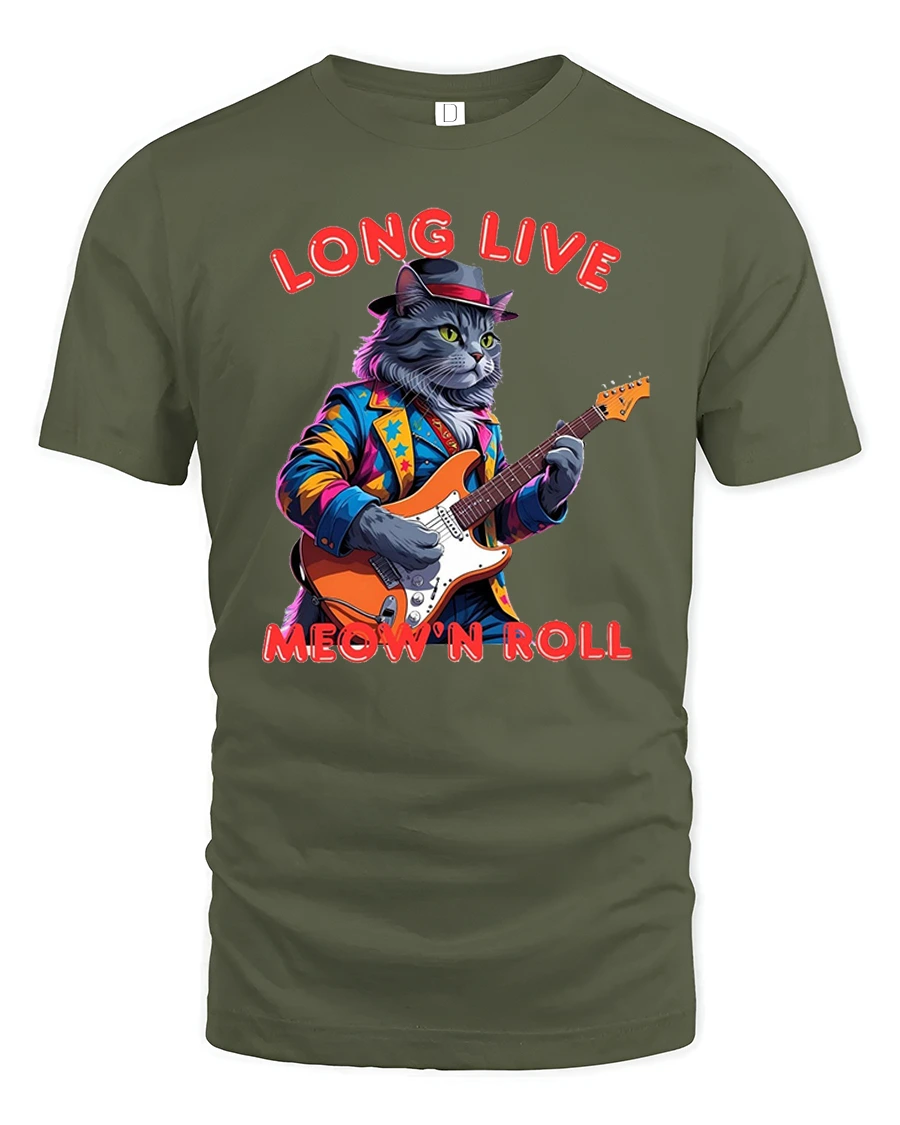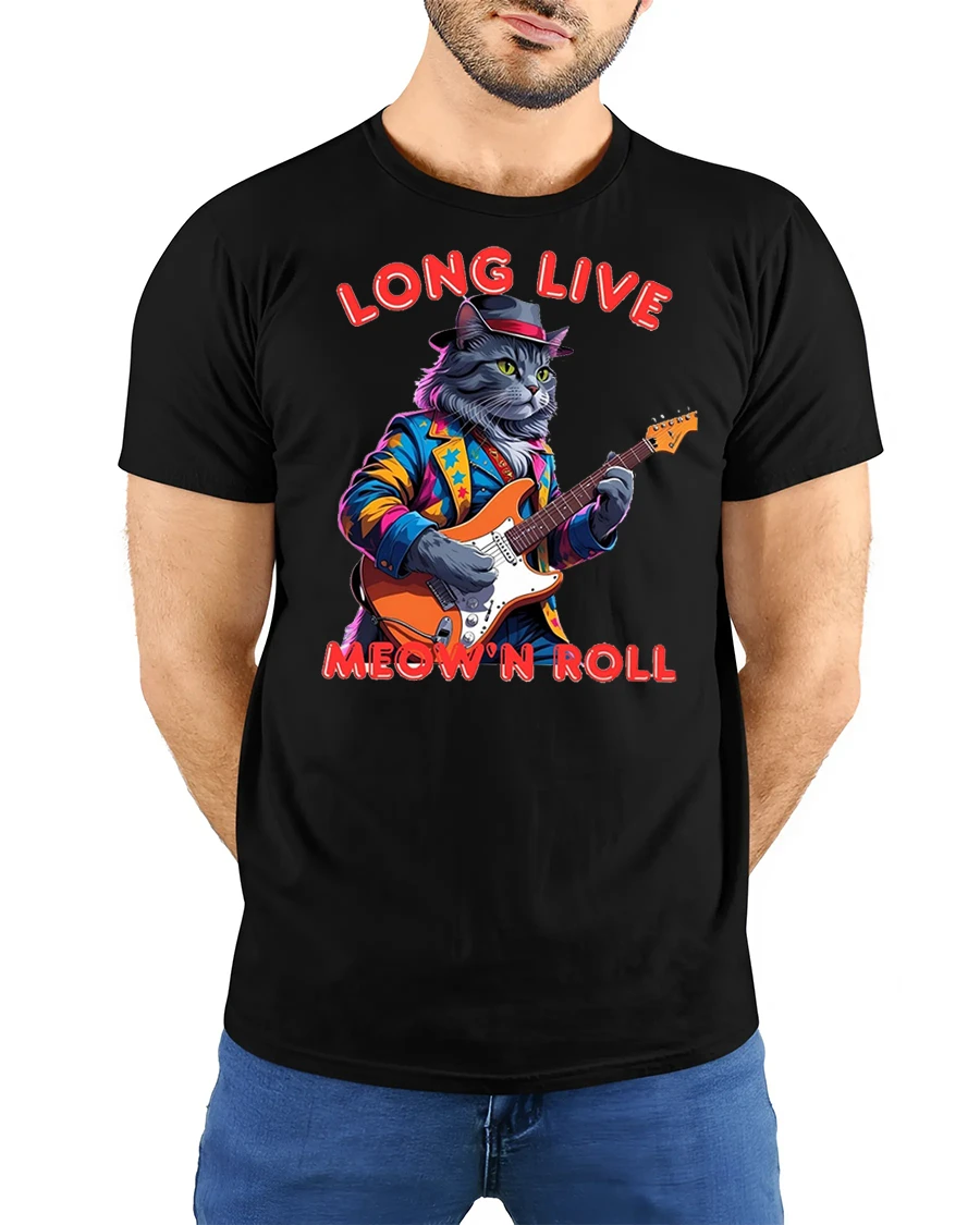 Whether worn to concerts parties casual hangouts or creative events the Long Live Meow N Roll Rockstar Cat Playing Guitar Graphic Tee brings fun and confidence to any outfit. This lively design also makes a great gift choice for cat fans and music lovers who enjoy bold expressive style.