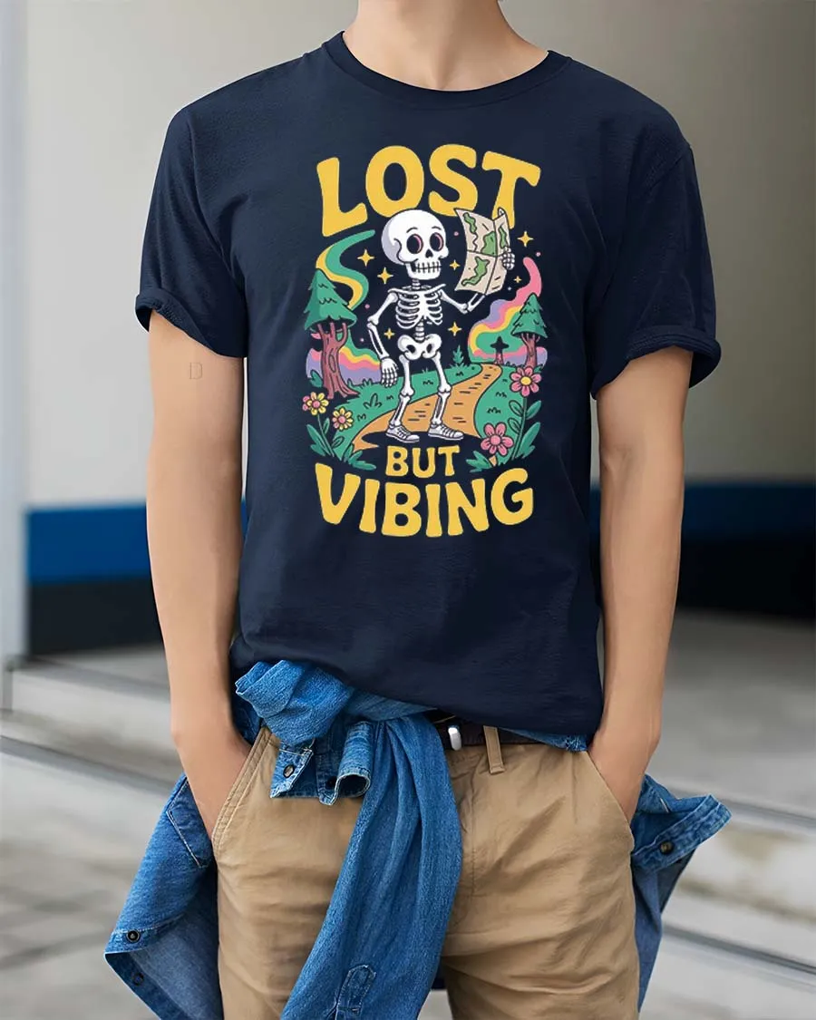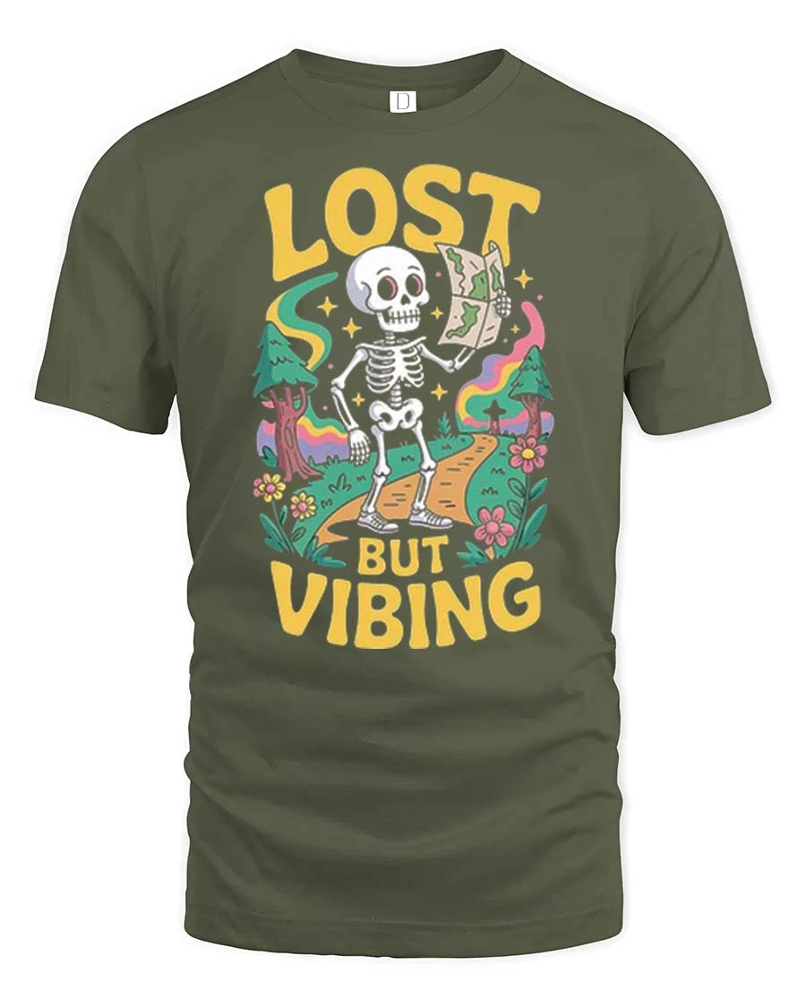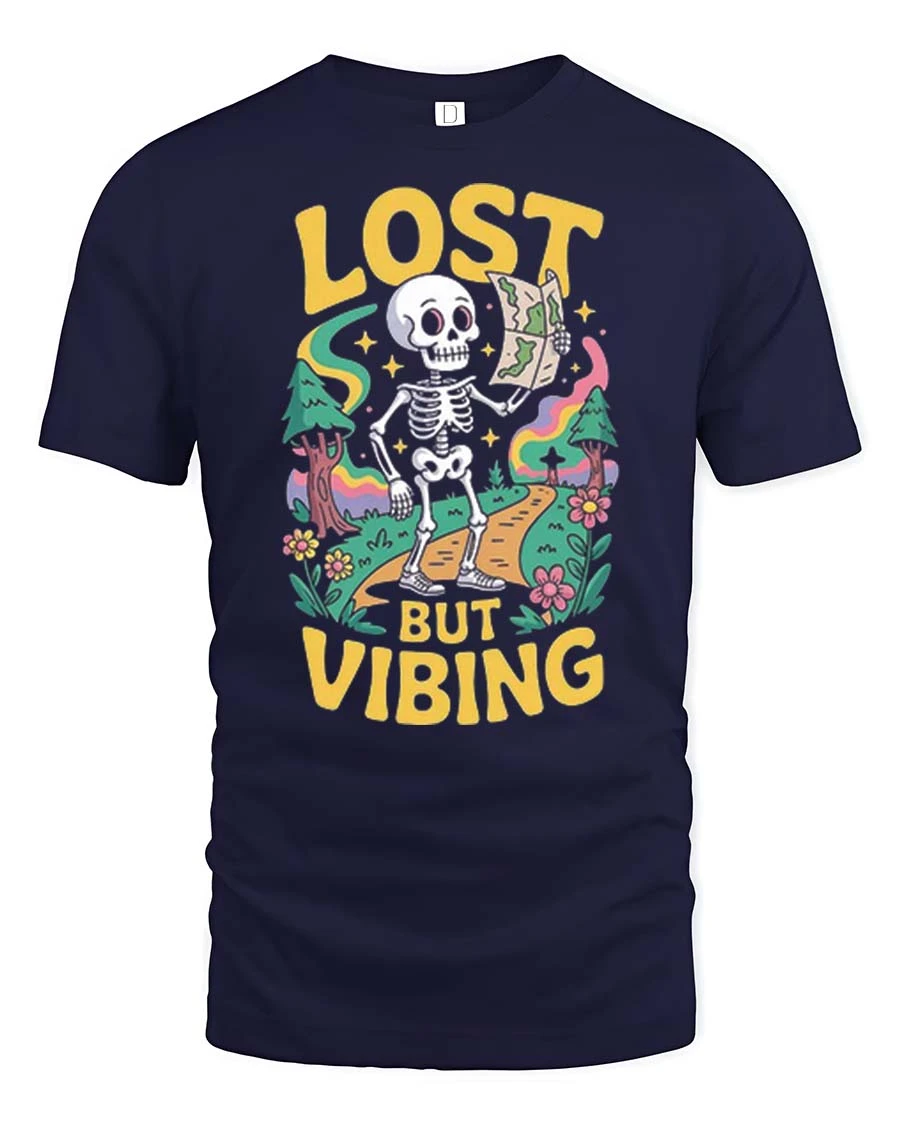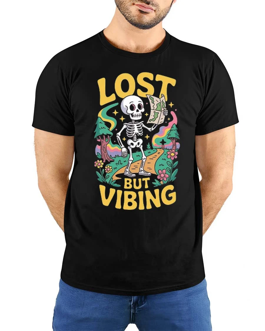 Lost But Vibing Funny Skeleton Retro Adventure Graphic T-Shirt is a great option for those who appreciate humor mixed with creative expression.