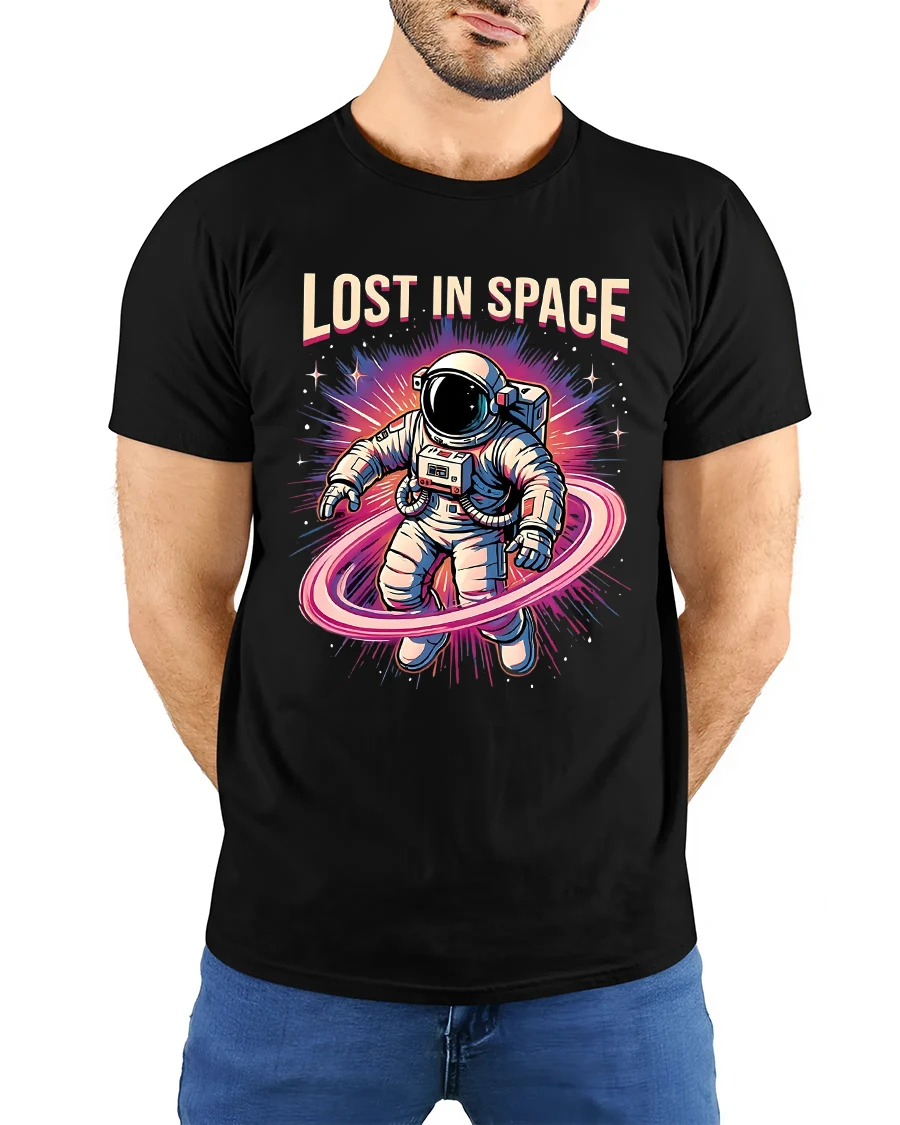 Lost In Space Astronaut Graphic Tshirt Retro Galaxy Art Tee is a confident choice for fans of sci fi art and expressive street style fashion.