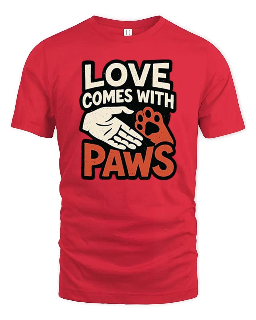 Love Comes With Paws Dog Lover Quote Graphic T-Shirt Tee is ideal for those who appreciate meaningful pet inspired artwork and expressive graphic fashion.