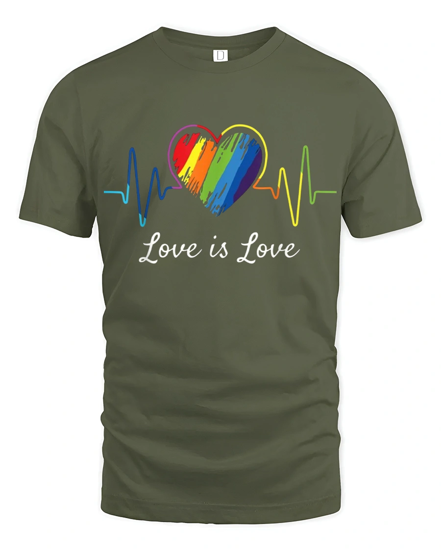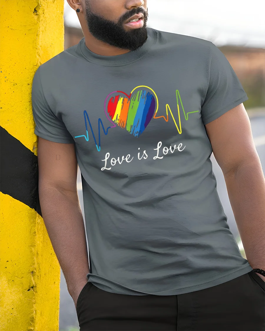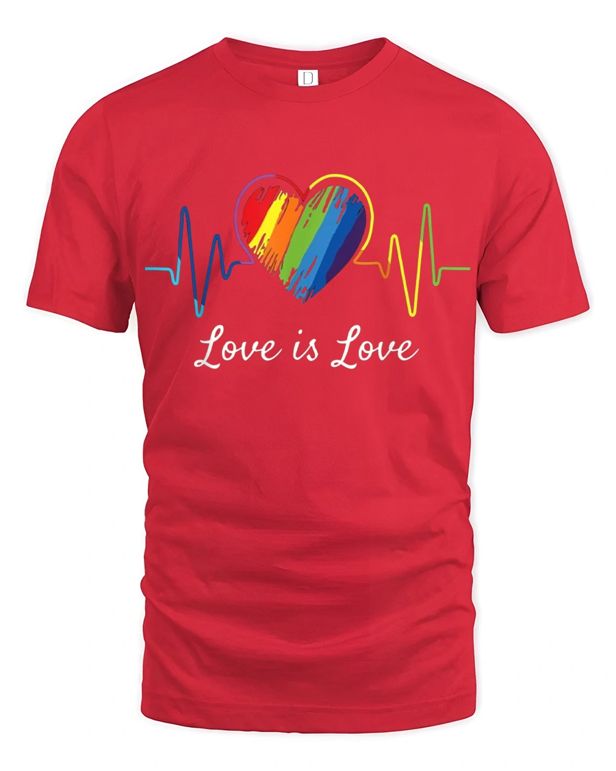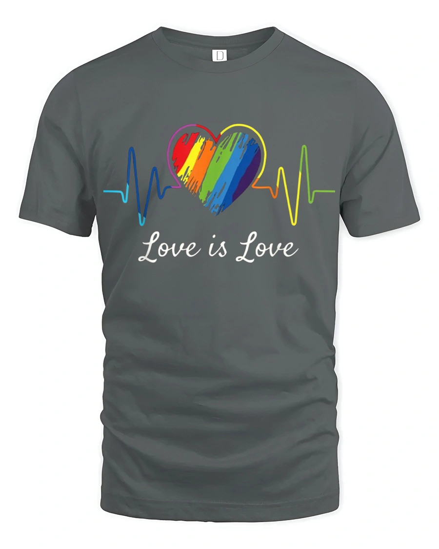 The Love Is Love Rainbow Heart Pulse Graphic Tee Pride Message Tshirt delivers a powerful message through a clean and colorful design.