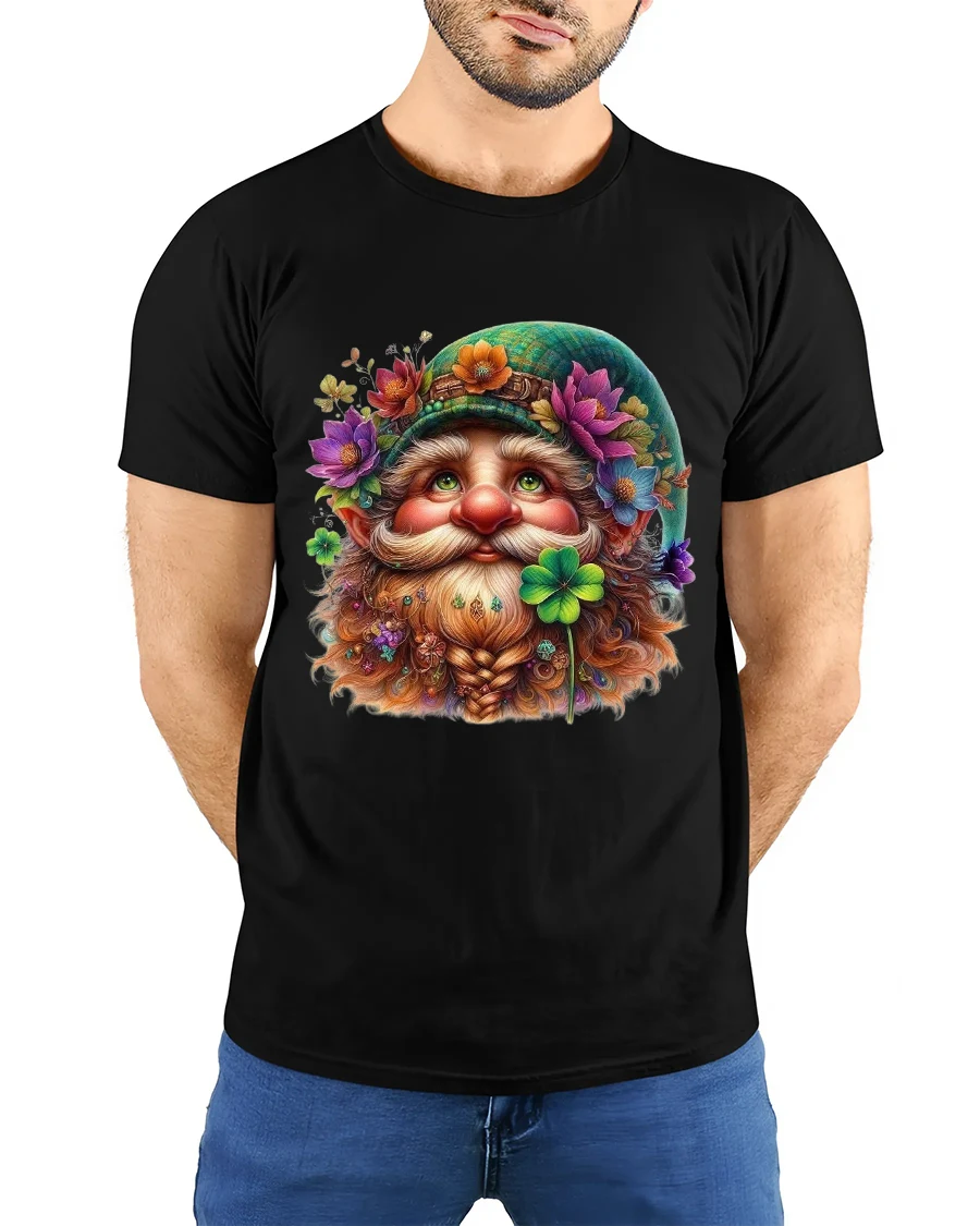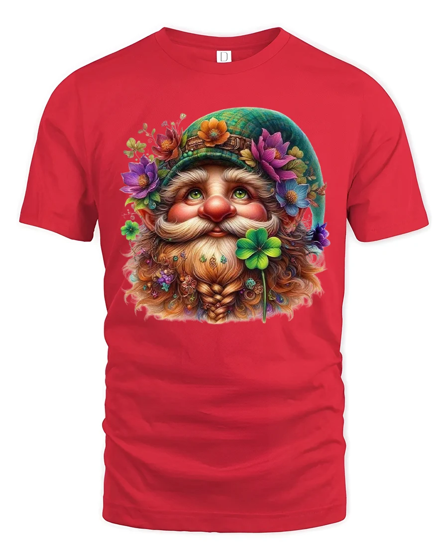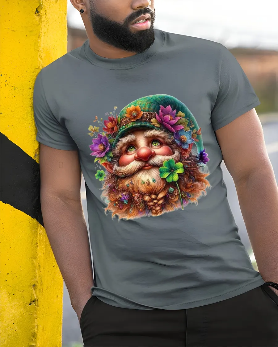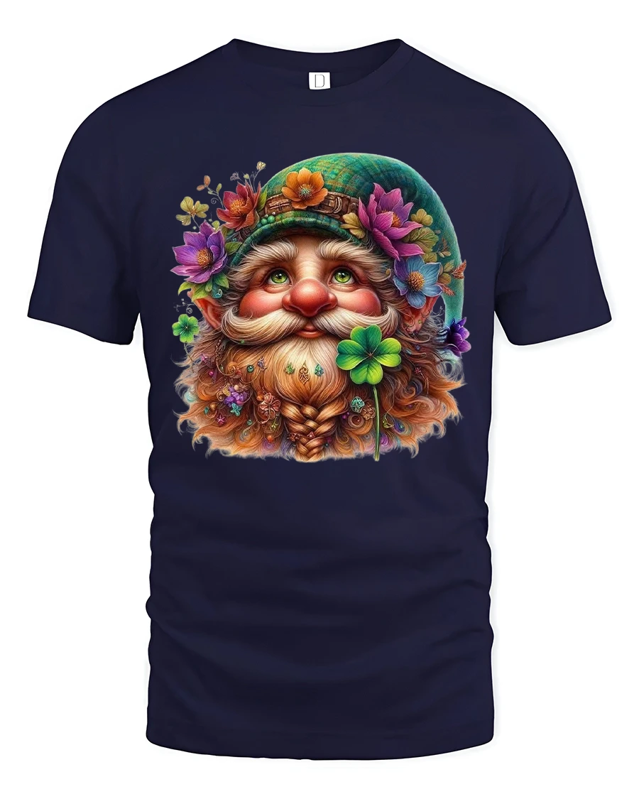 The Lucky Irish Gnome Floral Beard Art Graphic Tee Whimsical Tshirt is perfect for those who enjoy fantasy charm nature inspired artwork and feel good fashion.