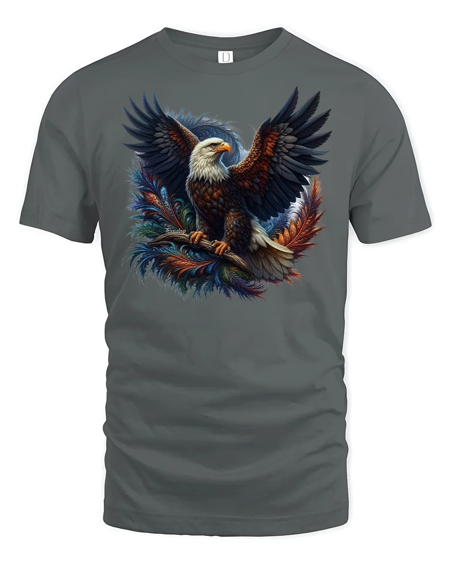 Majestic Bald Eagle Color Feather Art Graphic T-Shirt captures the strength, elegance, and symbolism of one of America’s most iconic birds. This stunning design features a proud bald eagle perched gracefully, surrounded by an explosion of vibrantly colored feathers that bring the artwork to life. The intricate details in the feathers and lifelike textures of the eagle make this tee a true wearable masterpiece.