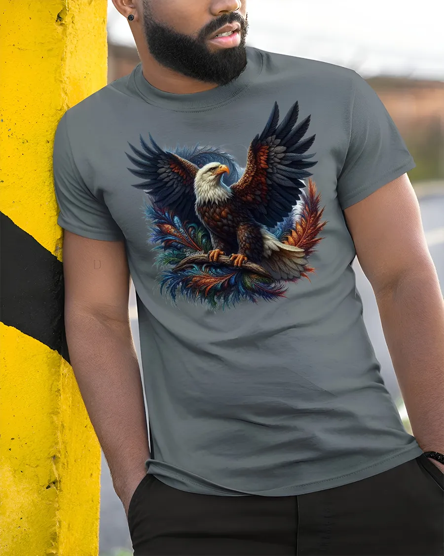 Made from soft, breathable fabric, this eagle lover t-shirt offers comfort while maintaining its striking print wash after wash. The high-quality design ensures the vivid colors and fine details remain crisp, making it a standout piece for both casual wear and special occasions.